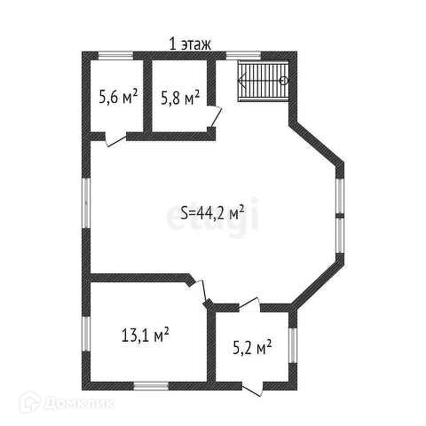 - на первом этаже: спальня, гостиная-кухня, сан.узел с ванной, кладовка