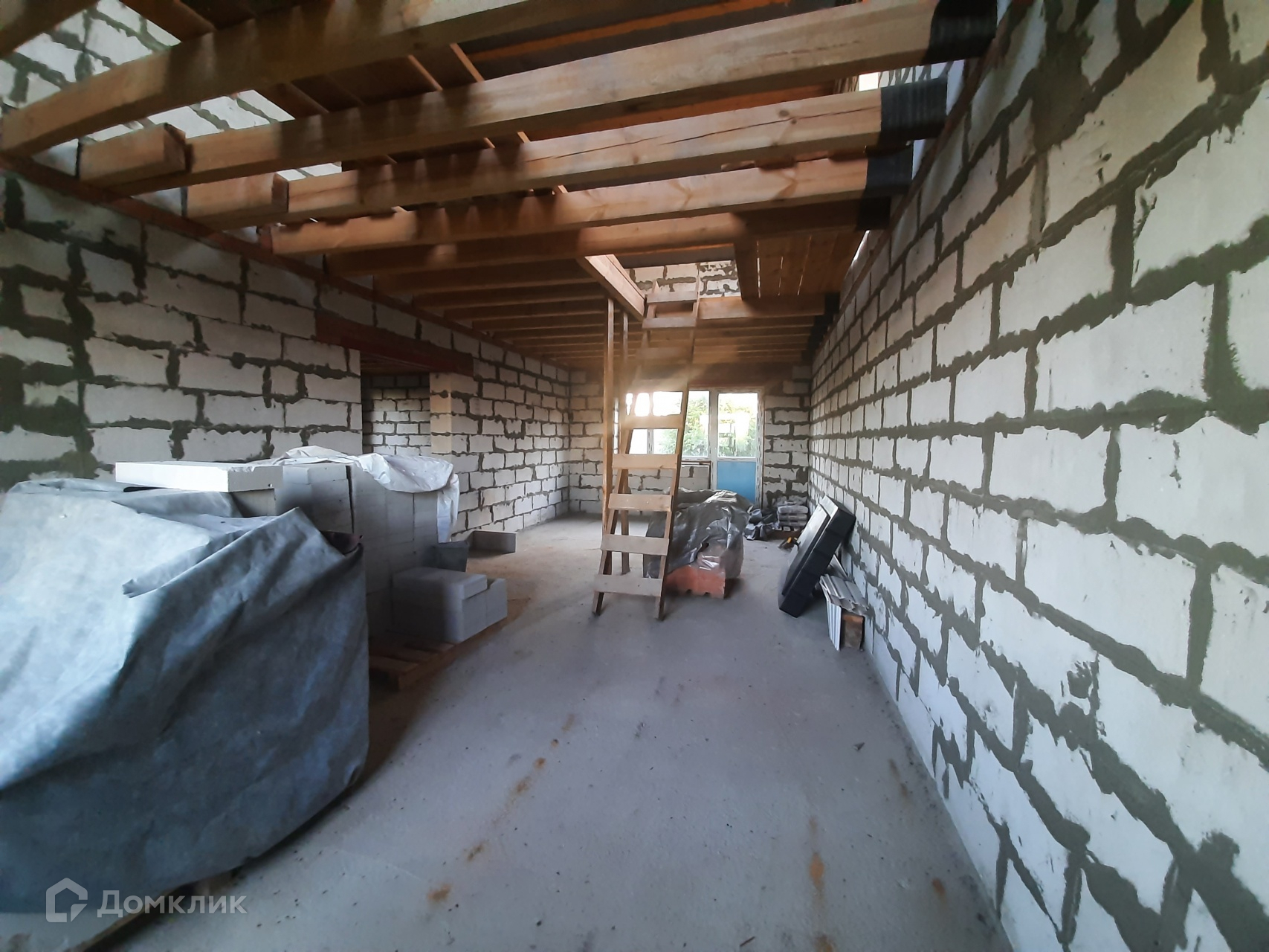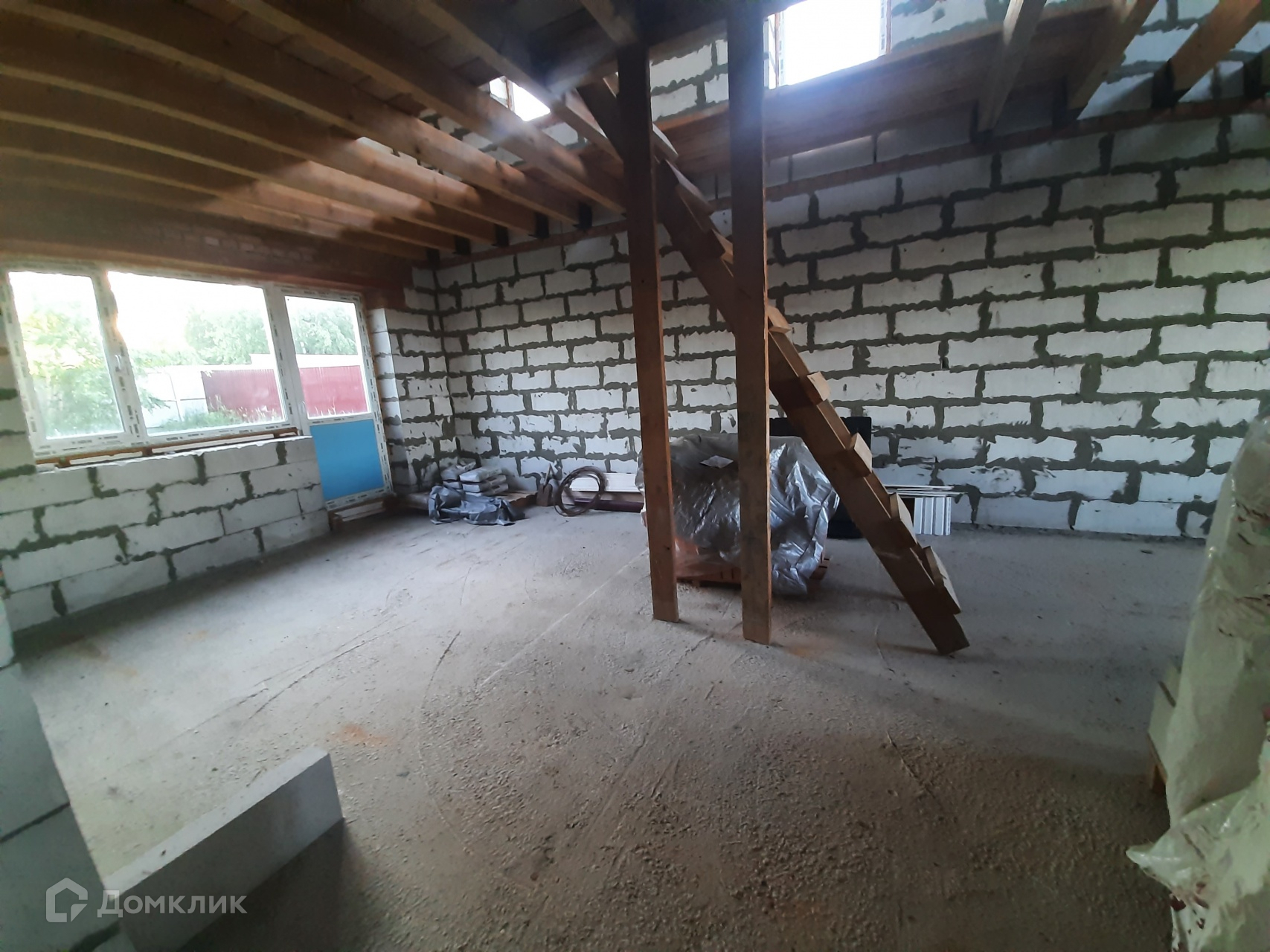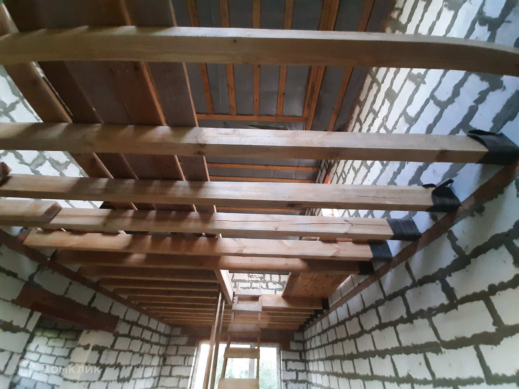 Перекрытие между этажами планировалось деревянное. Перекрытие не сделано, заложены балки и частично половые доски.