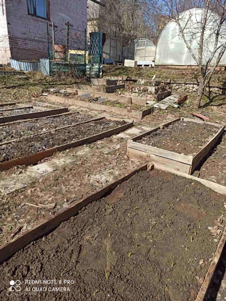 Растения : яблони, вишни, груши, сливы, смородина красная, чёрная, жимолость, голубика грядки, парник новый, клумбы, 18 кустов роз, 18 туй Сад плодоносящий.