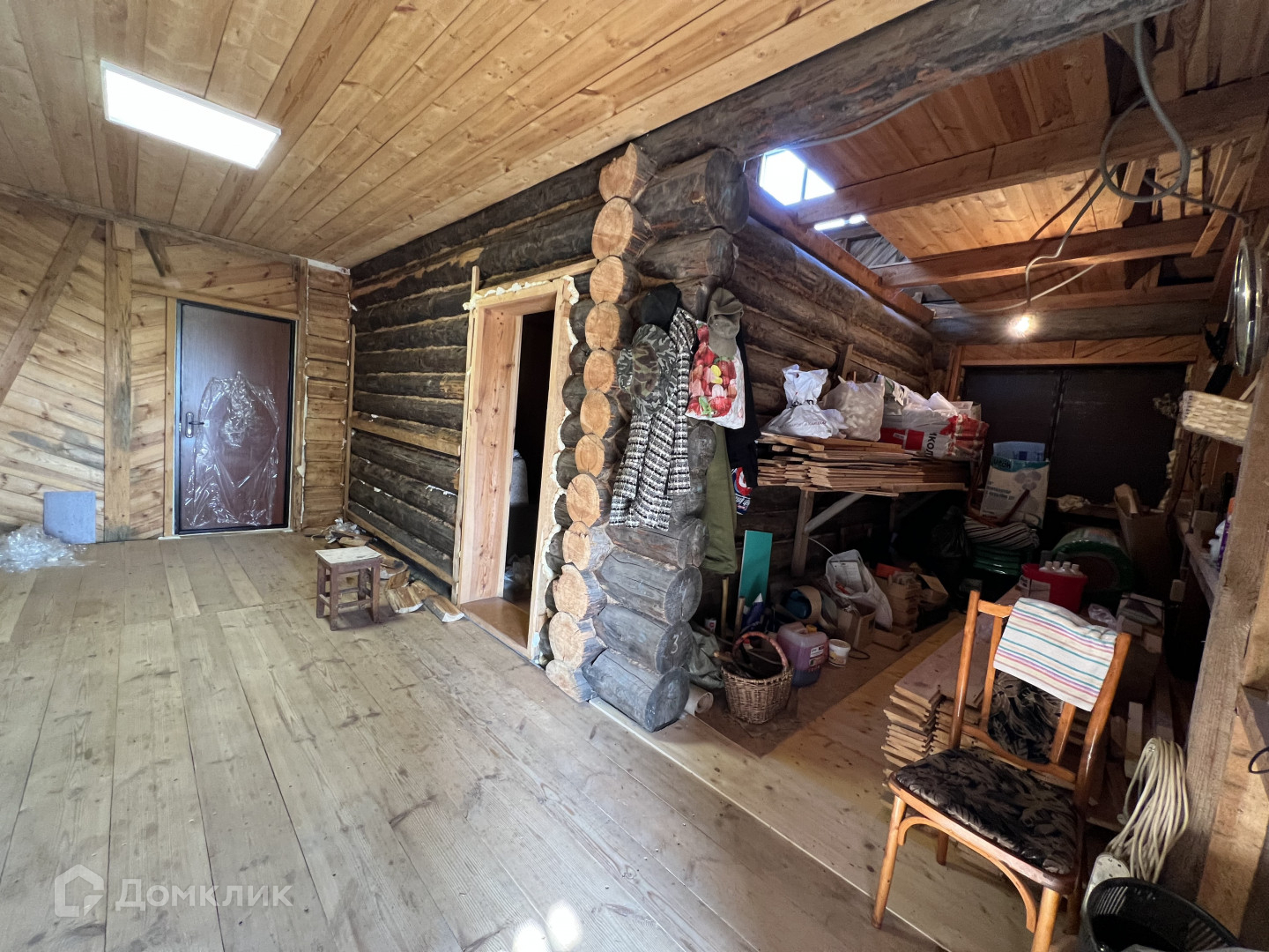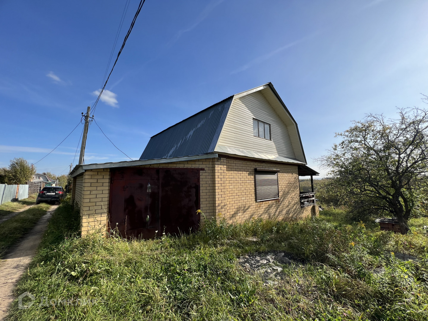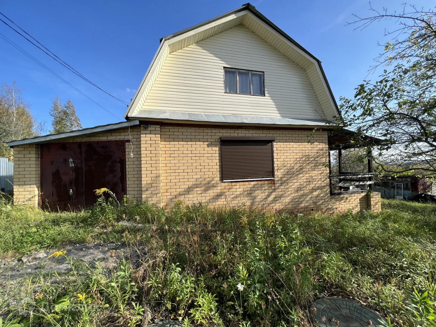 Дача построена из сруба и обложена керпичем. На 1-ом этаже изолированная комната, хоз блок, выход в гараж, на 2-ом этаже свободная планировка.