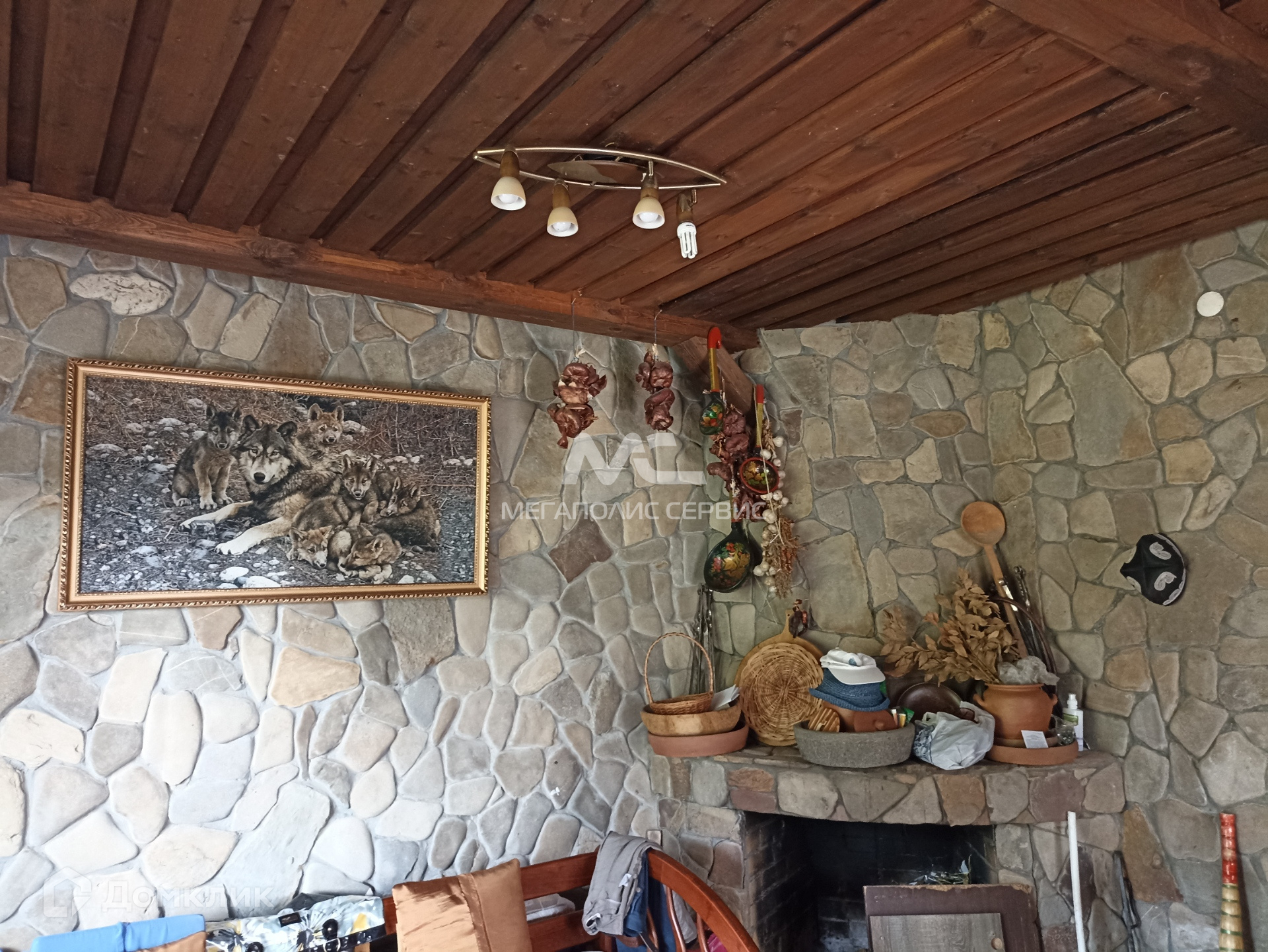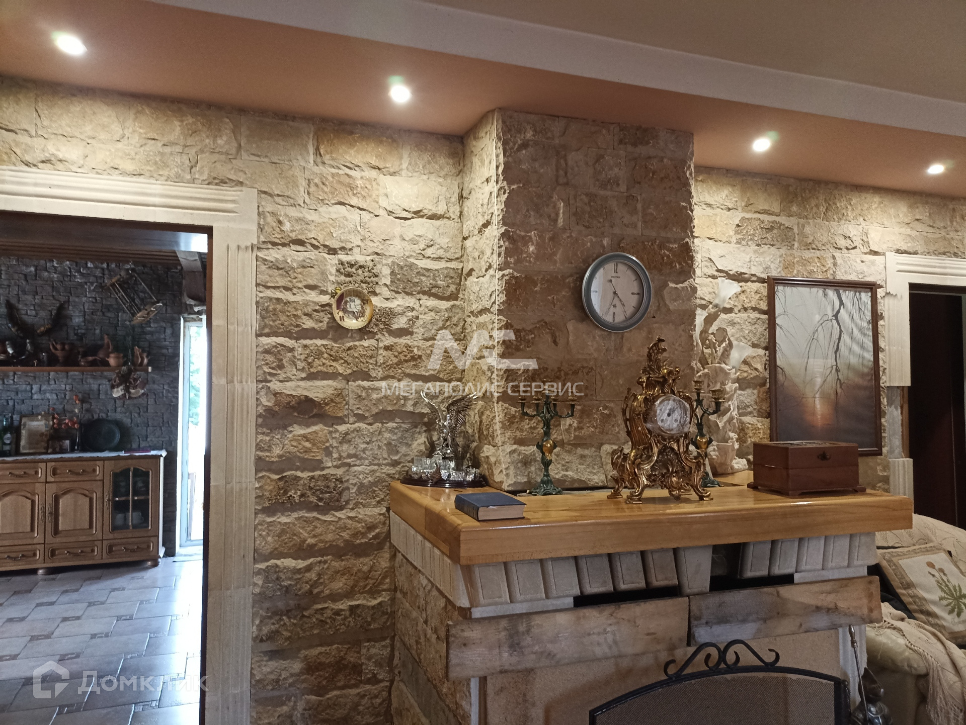 -на первом этаже: кухня с каминной зоной, большая гостиная с камином, спальня, сан. узел совмещён, прихожая. Выход на лоджию.