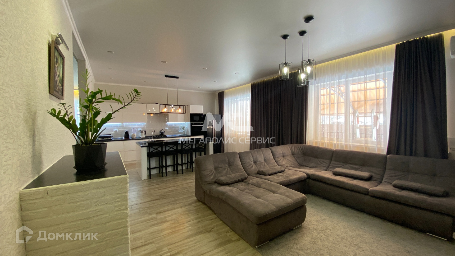 Кухня-гостиная, 3 спальни, гардеробная, 2 полноценных совмещенных санузла, котельная, терраса, 2 парковочных места.