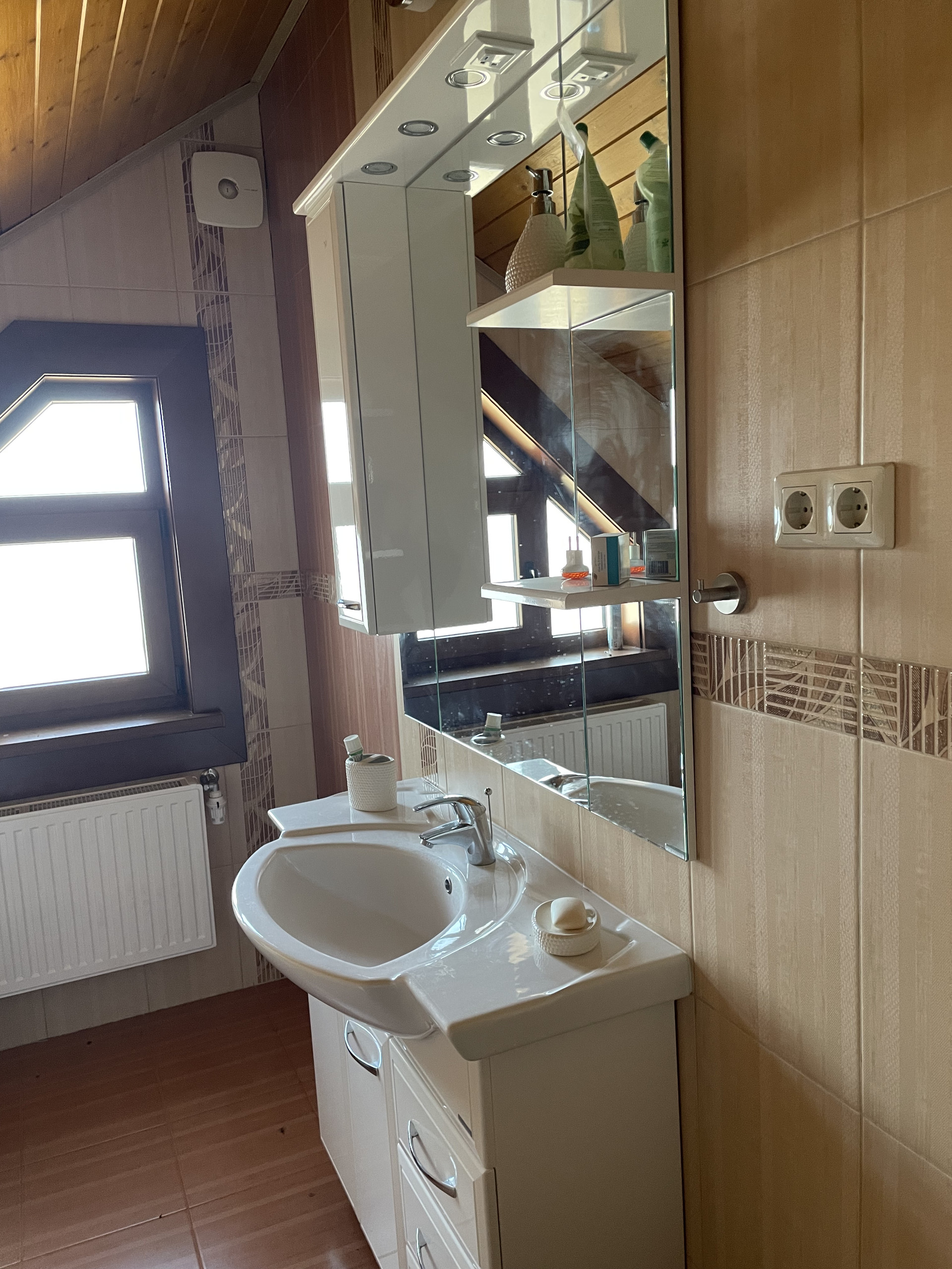 Первый этаж: кухня-столовая, гостиная с камином, спальня, сан.узел. В мансардном этаже 3 спальни и сан.узел. Отопление от электрического котла, подогрев горячей воды бойлером на 200м. Имеется умягчитель воды. Все оборудование: электрический котел, бойлер, умягчитель, автоматика управления насосом воды и теплым полом находится в котельной. Так же во дворе полив осуществляется автоматически.