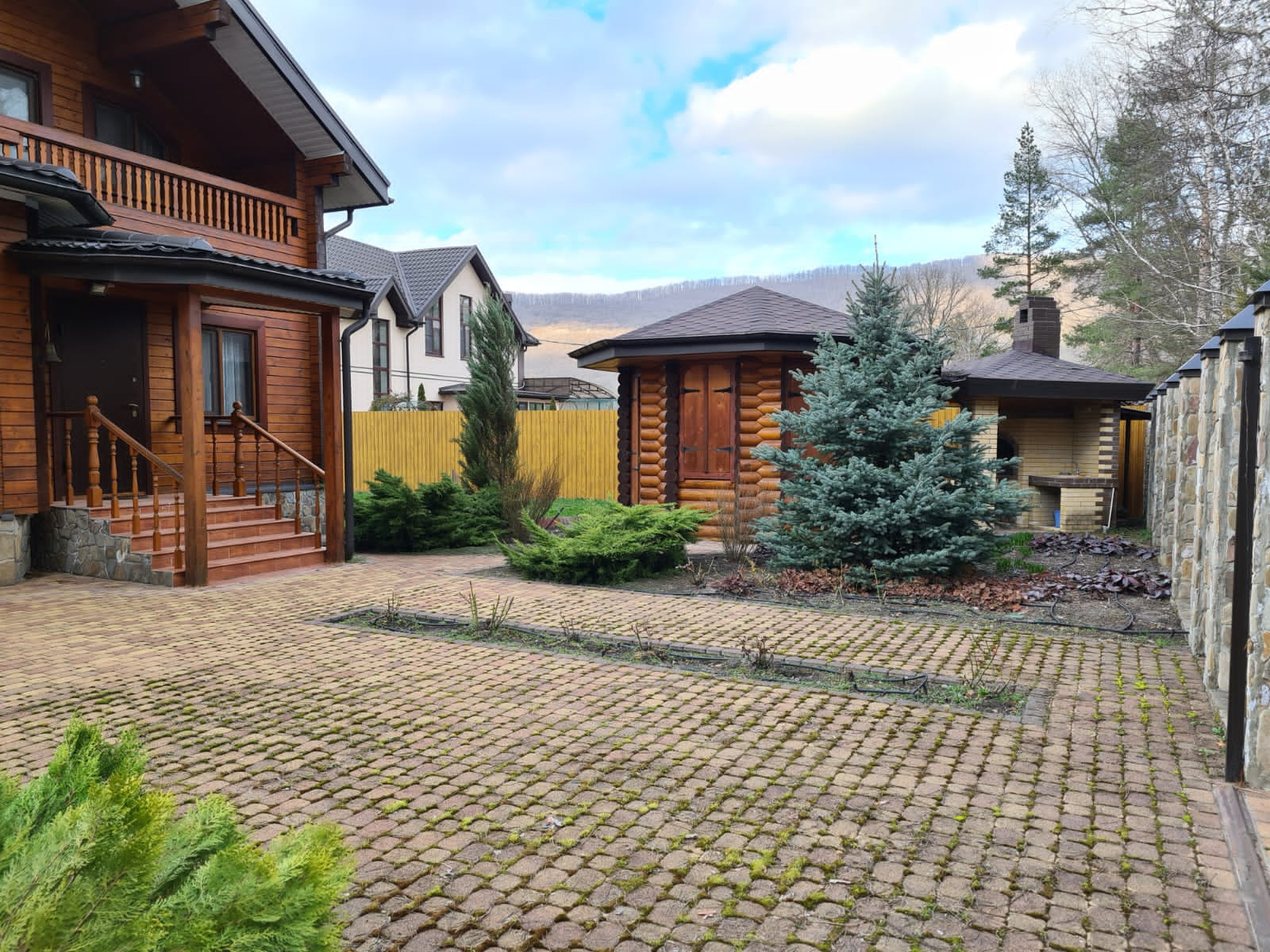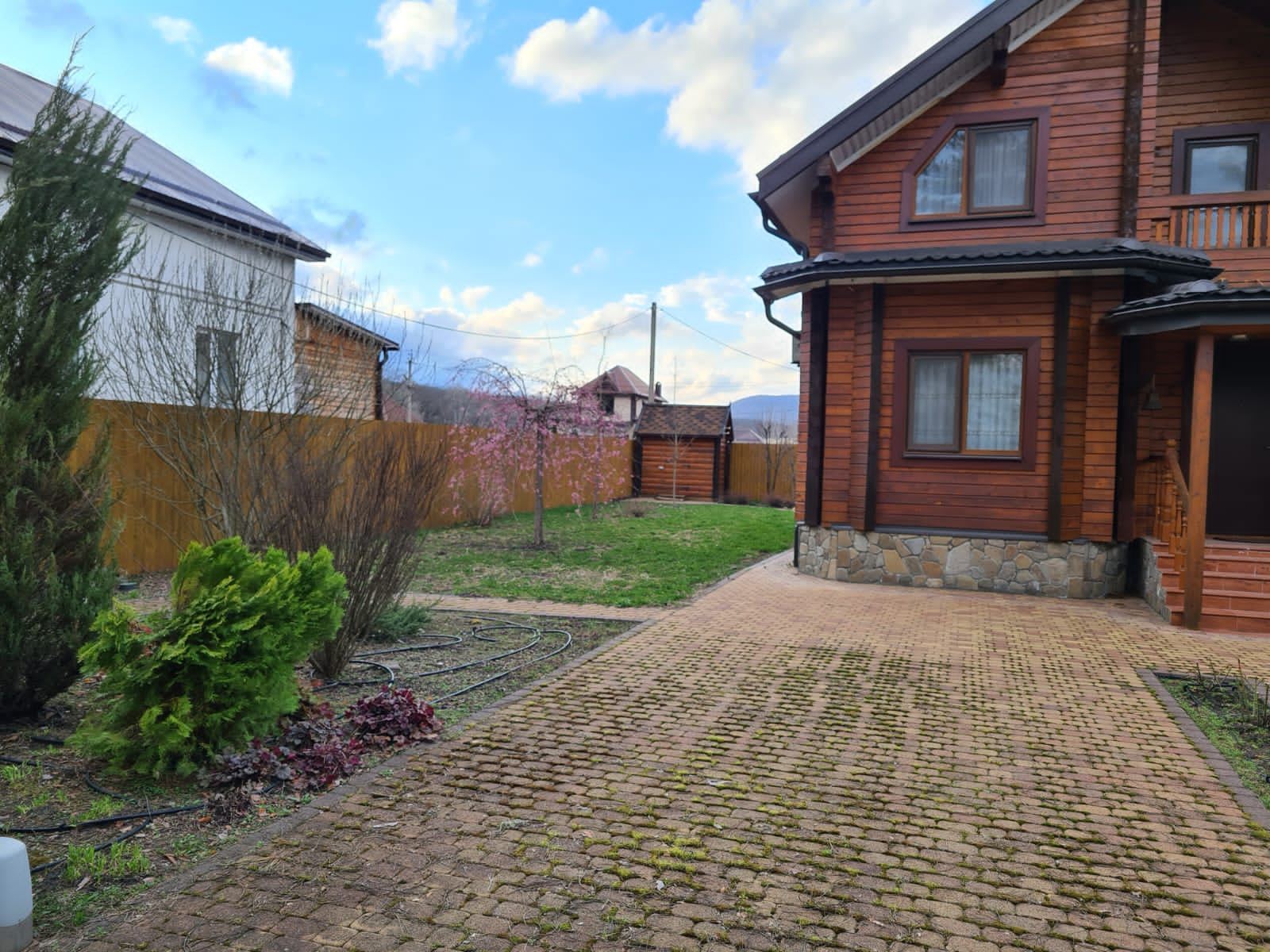 К дому пристроено тех помещение, котельная. Дом расположен на 766 м2, участок ухожен, есть уличный сан.узел с унитазом и раковиной, беседка с барбекю, сарайчик для инвентаря, площадка с качелями. Дом полностью готов к проживанию. Так же можно сдавать дом в аренду: 4 изолированные спальни и два сан.узла.Зона барбекю с беседкой. Есть место для бассейна.