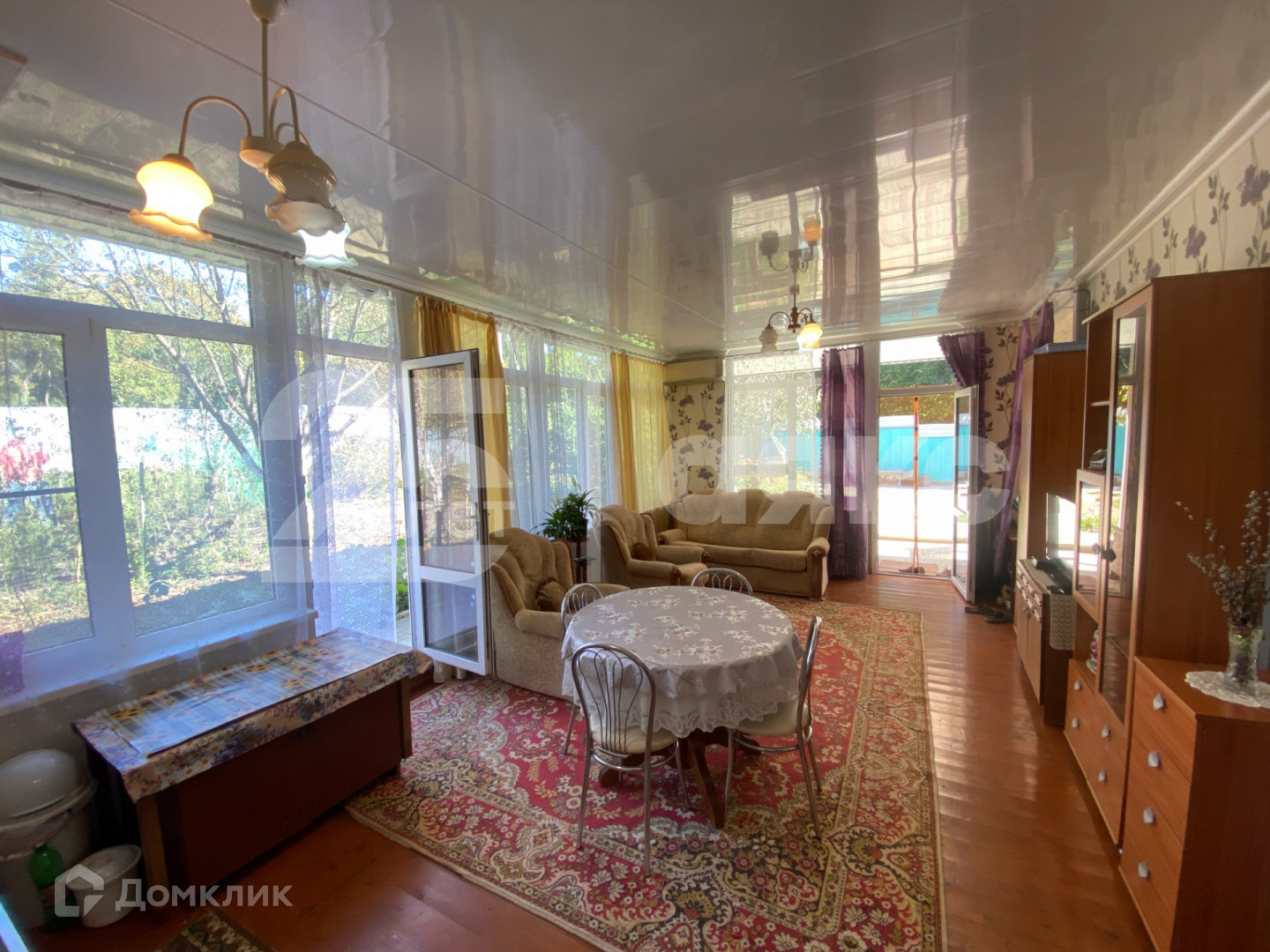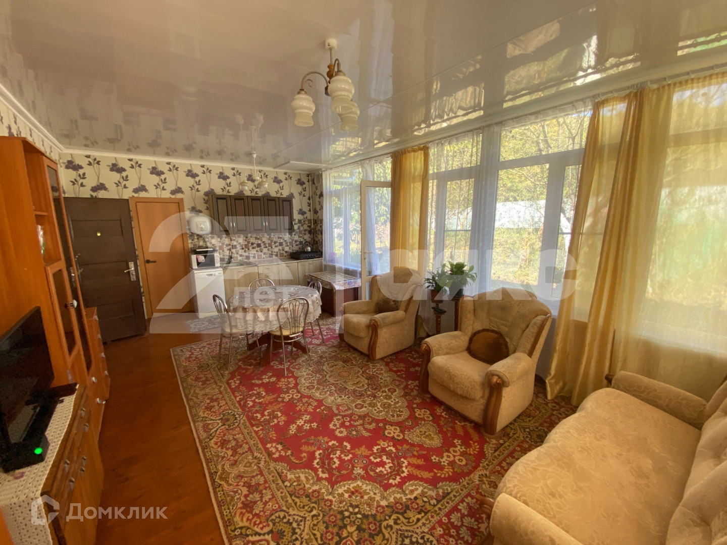 Просторная кухня-гостиная с двумя выходами во двор.