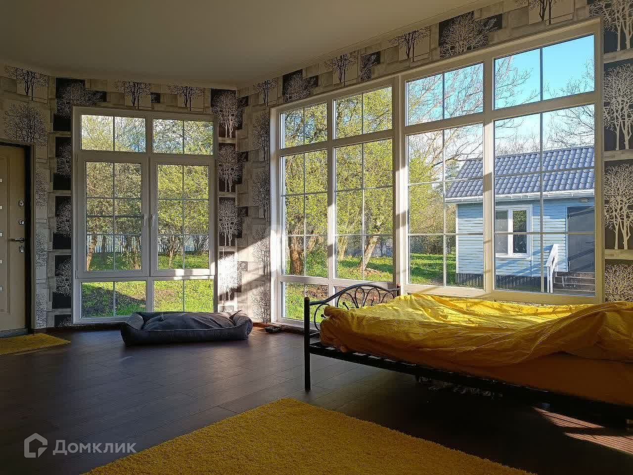 Одноэтажный дом 30 м² с отделкой, мебелью, бытовой техникой. Единая комната (студия) с кухонной и спальней зоной.