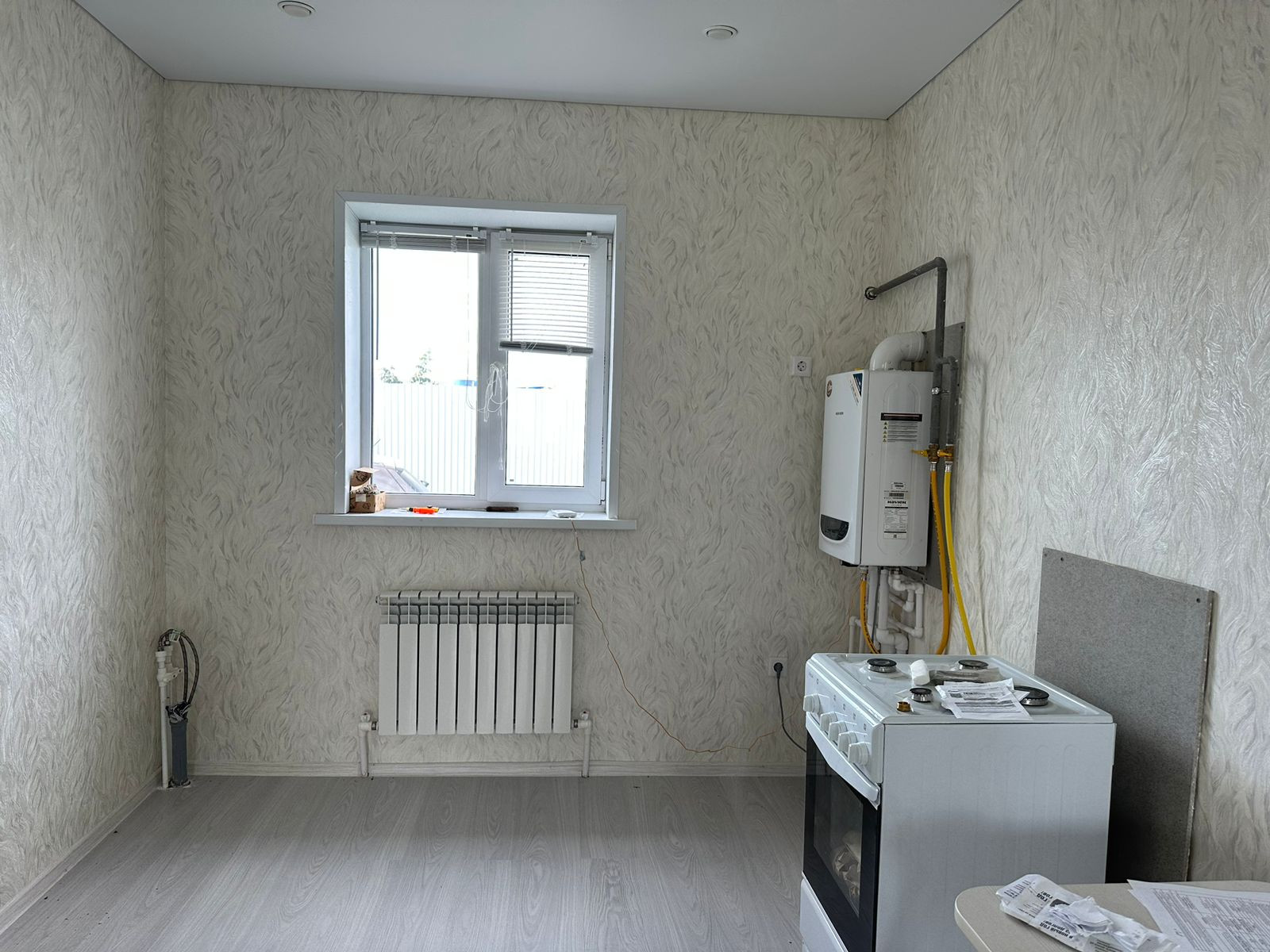 Дом теплый, установлeн гaзовый котел, электирчество проведена, вода центральное,канализация септик!