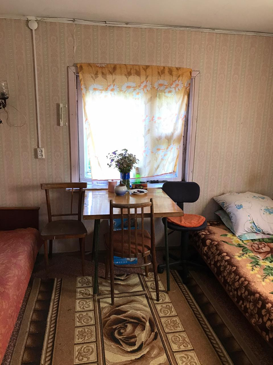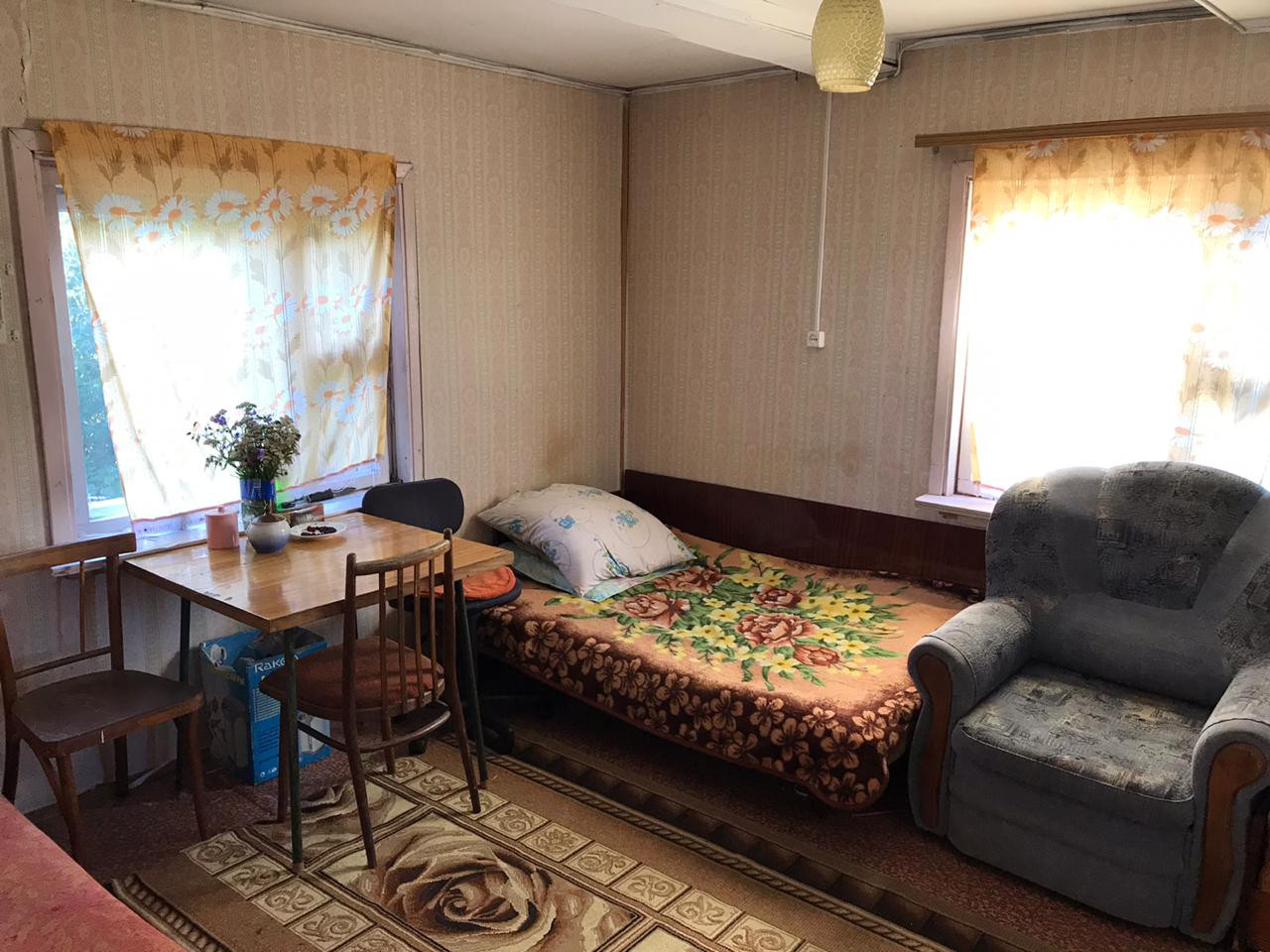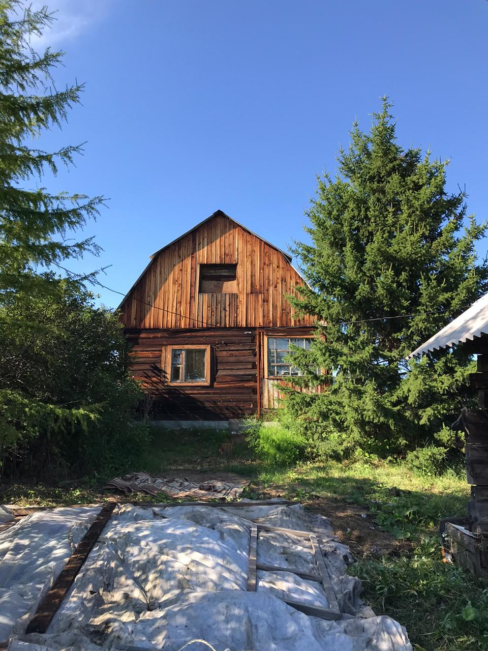 Материал постройки - дерево, на фундаменте, отопление печное.