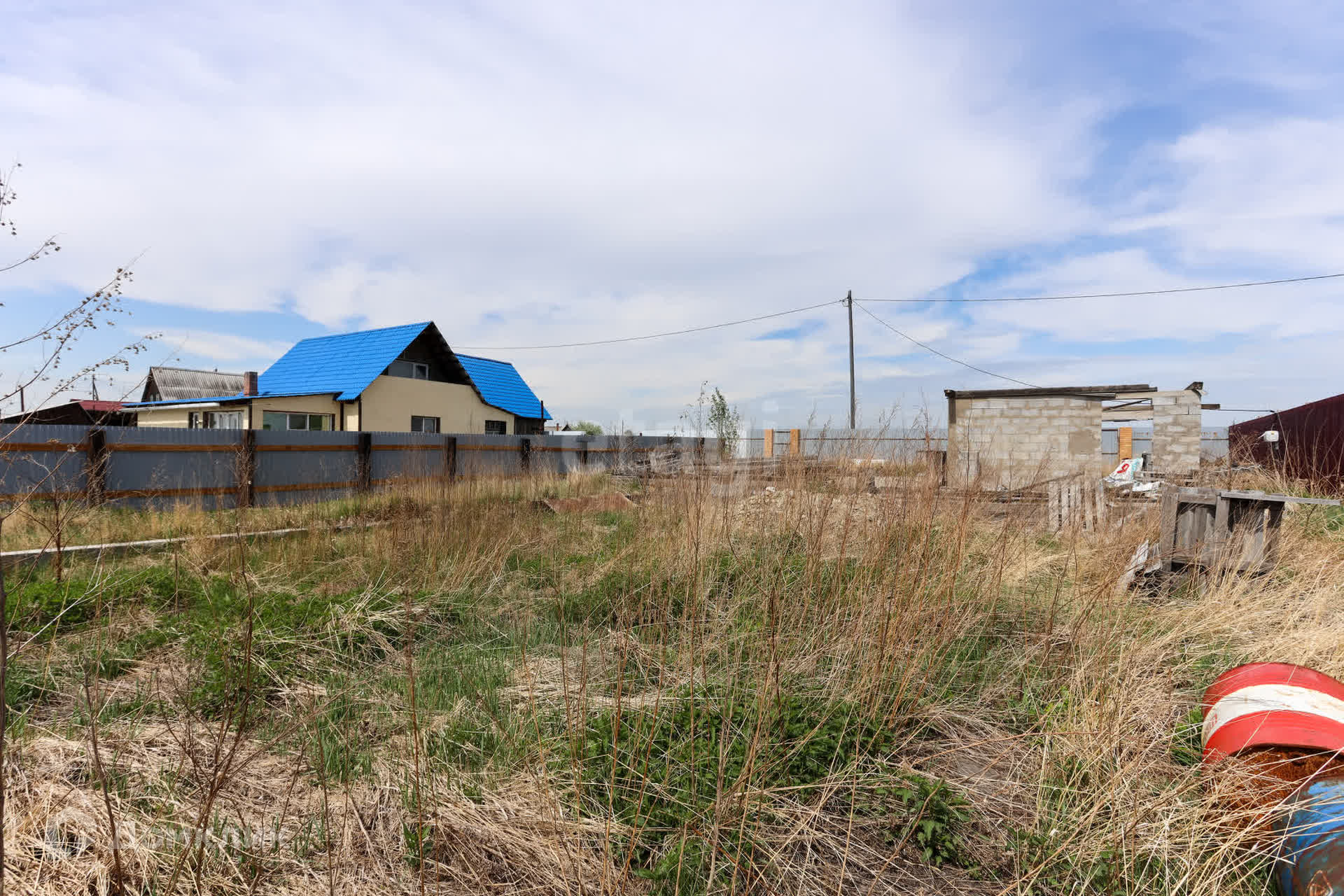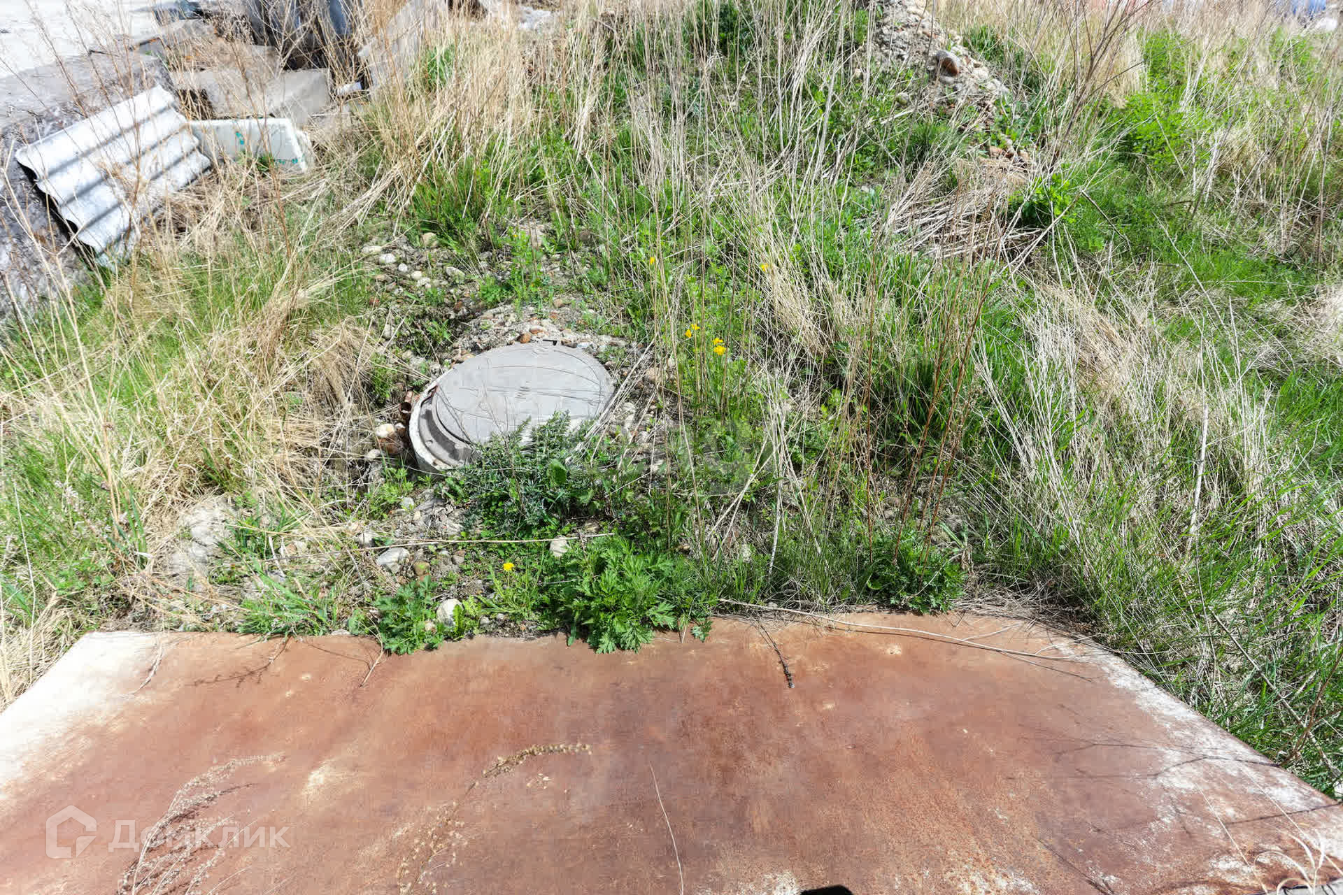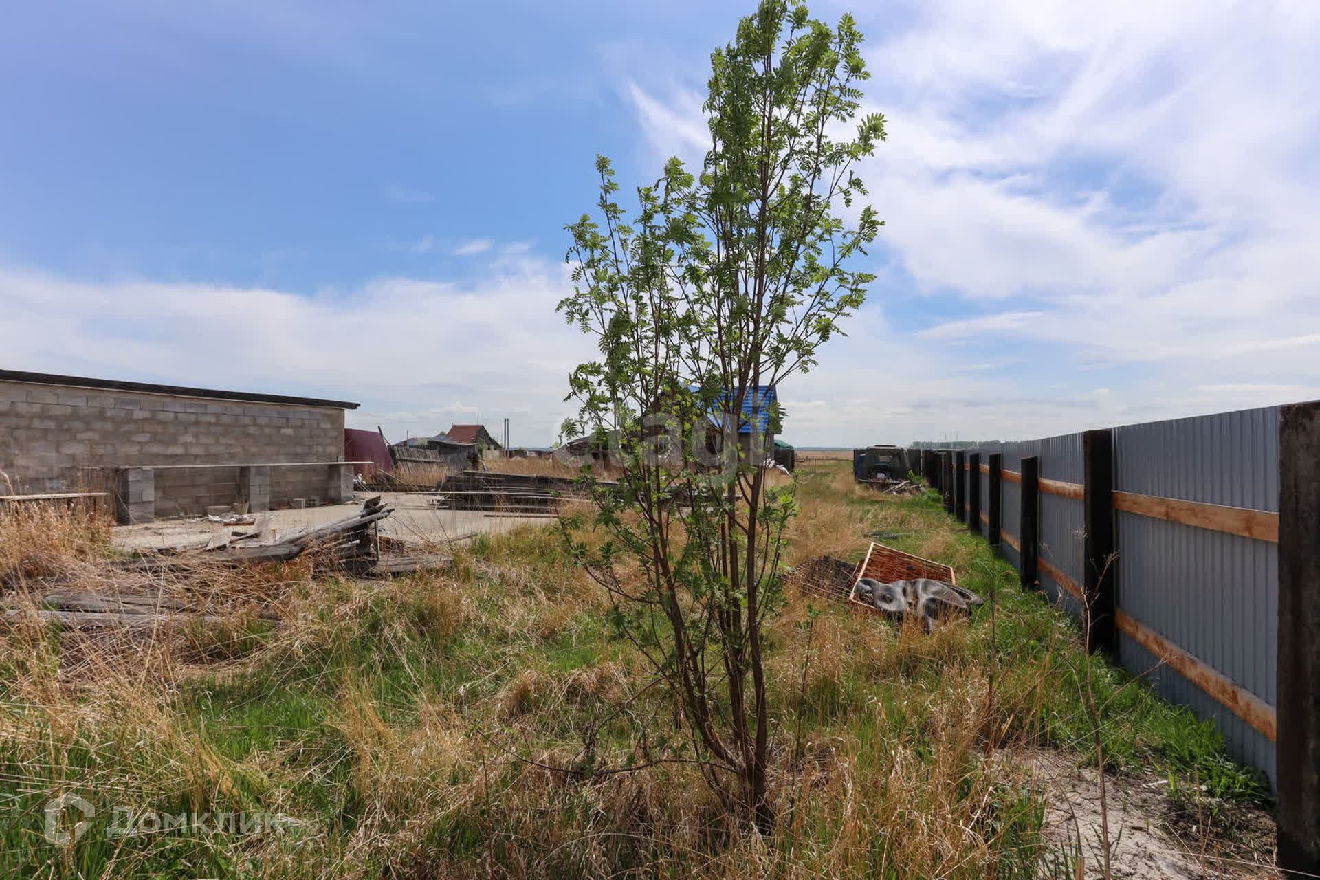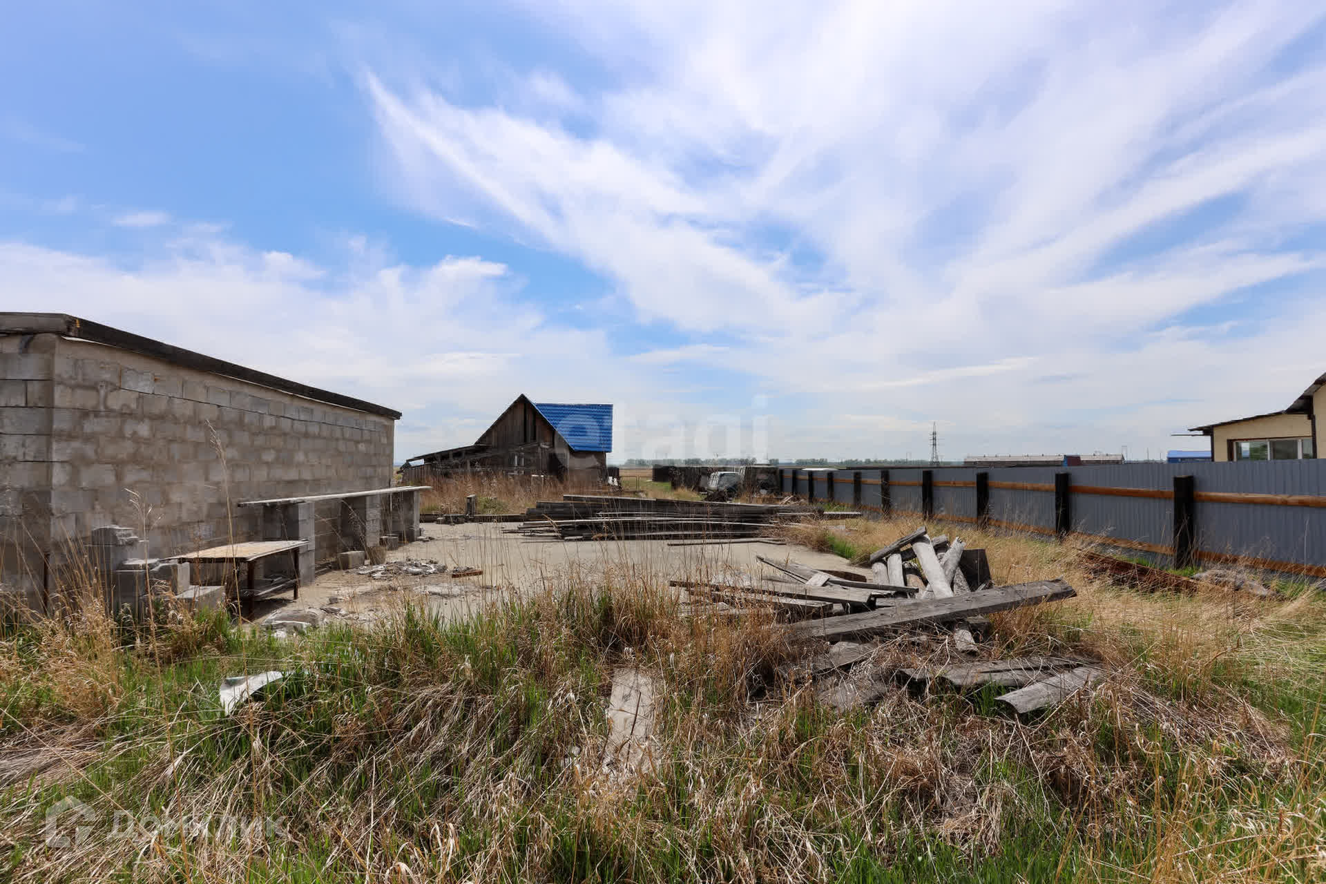 На территории участка монолитный фундамент с построенной коробкой из газоблока под гараж, оборудованный смотровой ямой. Осталось сделать крышу и установить ворота.
