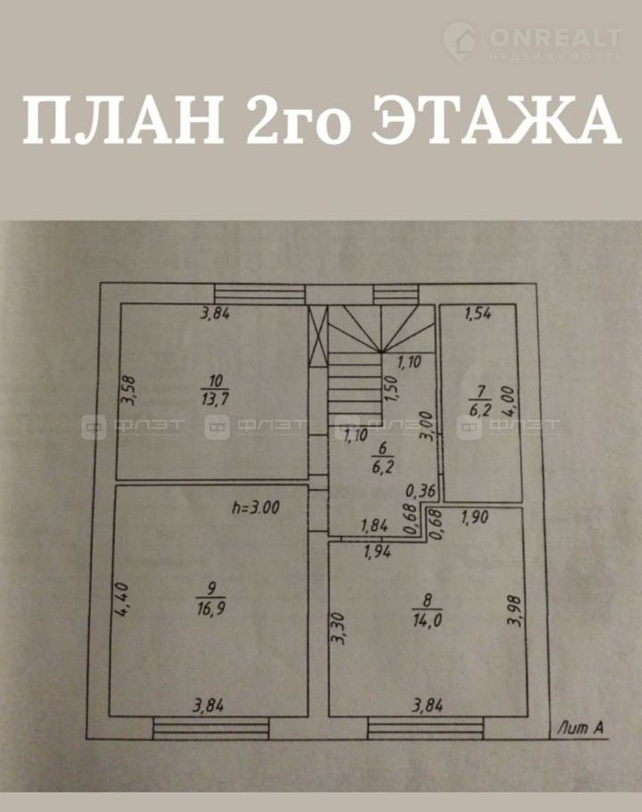 Жилая площадь = 53,5 м.кв. (кабинет на первом этаже 8,9 м.кв., плюс три спальни на втором этаже 14 м.кв., 16,9 м.кв., 13,7 м.кв.)