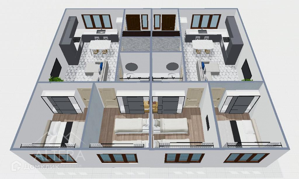 Арт. 51112255 Продается одноэтажный таунхаус в коттеджном поселке Бима , окруженный со всех сторон лесом , въезд на территорию поселка через шлагбаум .