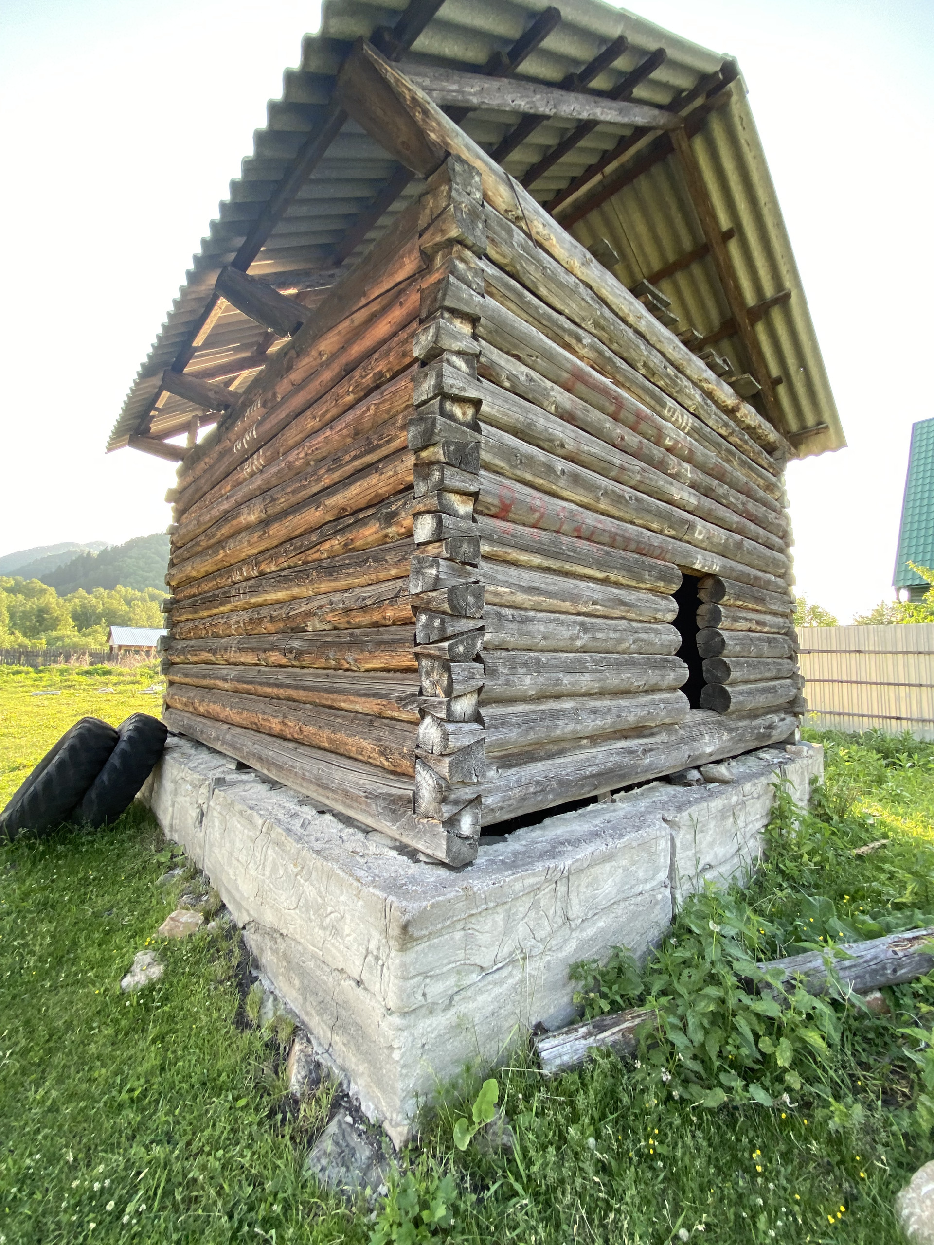 Участок рядом с трассой расположен в собственности, на участке сруб под крышей  на фундаменте 4.5х4,5