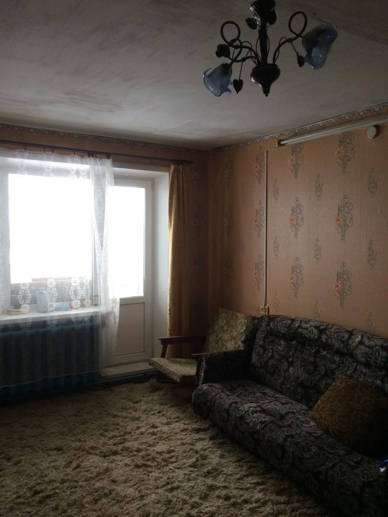 Квартира расположена на третьем этаже, классической планировки с кухней, совмещенным санузлом, большой комнатой и балконом.
