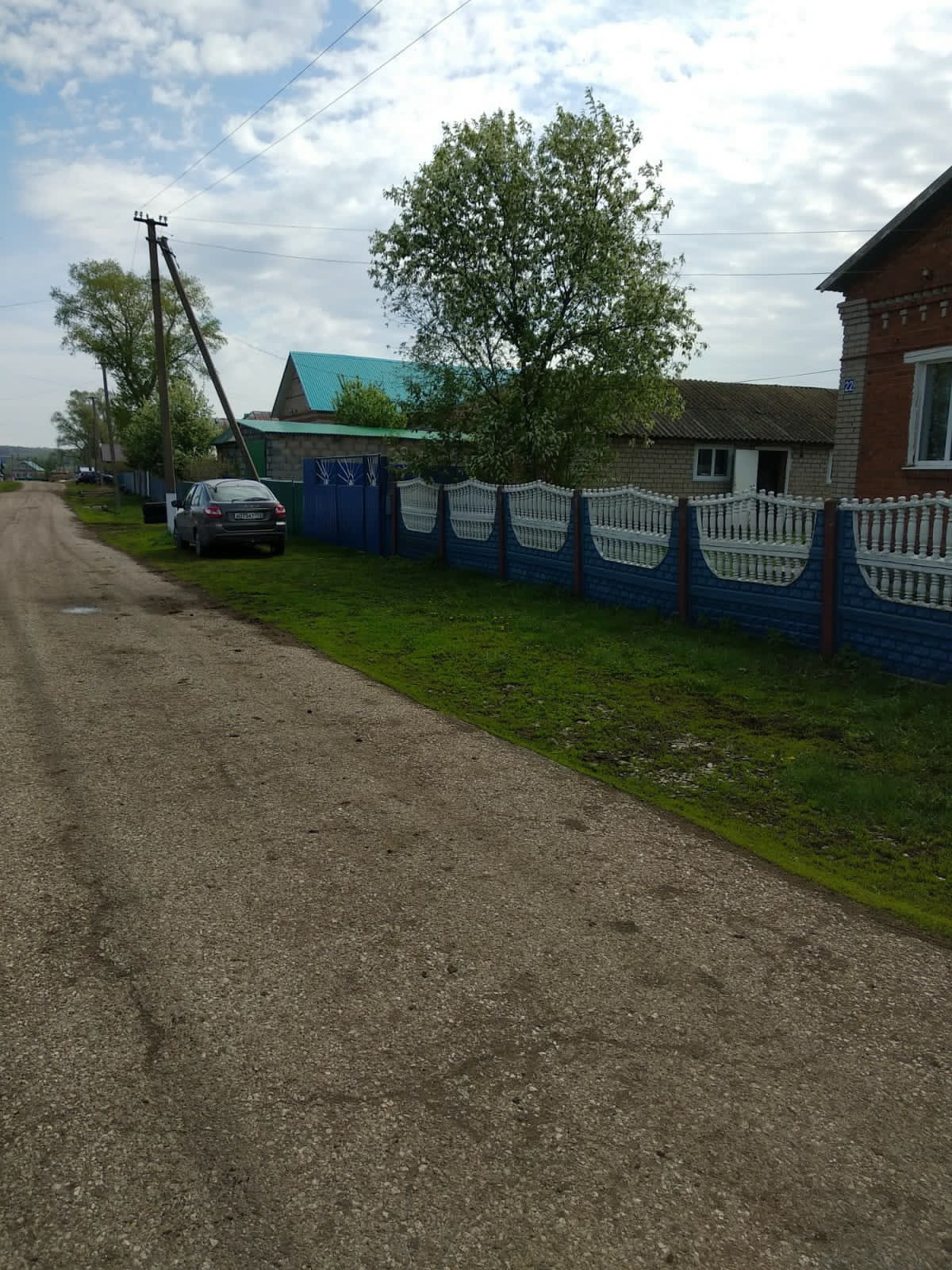 Участок полностью огорожен забором, между соседями профнастилом, с лицевой стороны бетонный забор.