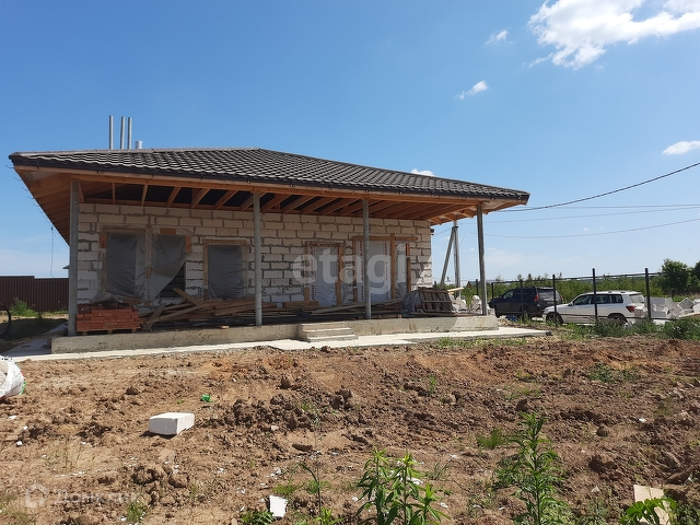 Продается прекрасный дом 115 кв. метров на участке 7 соток с просторной гостиной 45 кв. метров в живописном месте в Домодедовском районе (до станции города Домодедово ехать на машине 15 минут). в поселке Новое Битягово (река Рожайка, лес, святой источник). В статусе ИЖС. В доме есть 3 спальни, 2 санузла, котельная и общая гостиная с кухней, есть возможность отделить их при желании поскольку окна есть и там и там. Один собственник, без обременений, возможно рассматривать ипотеку. Дом находится на этапе внешней отделки. При строительстве дома использованы все самые качественные материалы - металлочерепица 0.5, бетон везде залит 300-й, дерево дорогое и обработанное и т. д. Дом стоит на монолитной УШП (система Утепленная шведская плита), без дополнительных стыков с открытой верандой, которую при желании можно завести в тепловой контур дома. Залита площадка для парковки двух автомобилей. Дополнительно на ступени перед входом выведен греющий кабель. Электричество и вода в дом заведены. Имеется септик. Потолок утеплен и подшит. Участок уже разровнен. Круглогодичный подъезд к участку. Газ проходит по границе участка. Имеется отдельно помещение под бойлерную\котельную согласно нормам, вентиляция проложена и уже выведена через крышу соответственно. Дом одноэтажный, но с очень хорошей планировкой для комфортного проживания.  Имеется проект с рекомендательной расстановкой мебели. Цена за дом указана на текущий момент. Есть возможность купить его на стадии внешней отделки или плюс внутренней. Дом строится достаточно оперативно и профессионально. Ждем новых хозяев! Номер в базе: 9535419. Район: Битягово