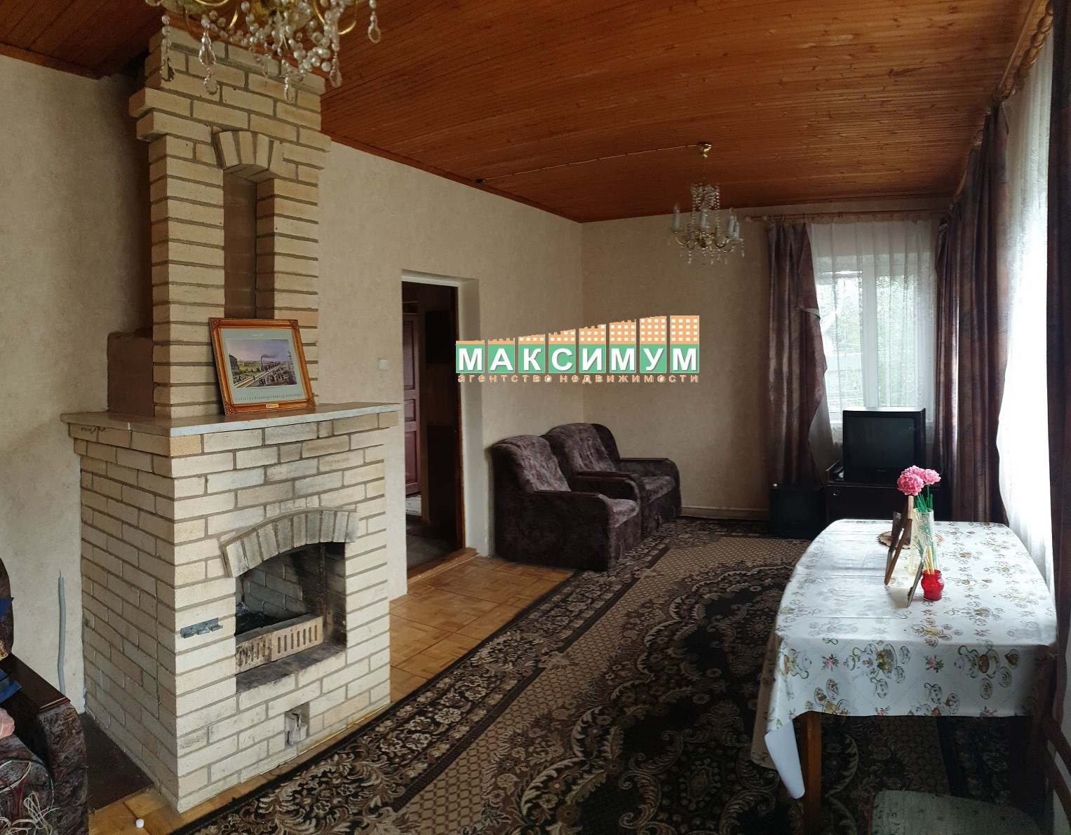 На первом этаже: коридор, кухня 7 кв.м. переходящая в небольшие 2 комнаты, с возможностью все объединить, совмещенный санузел с душем, гостиная с действующим камином.