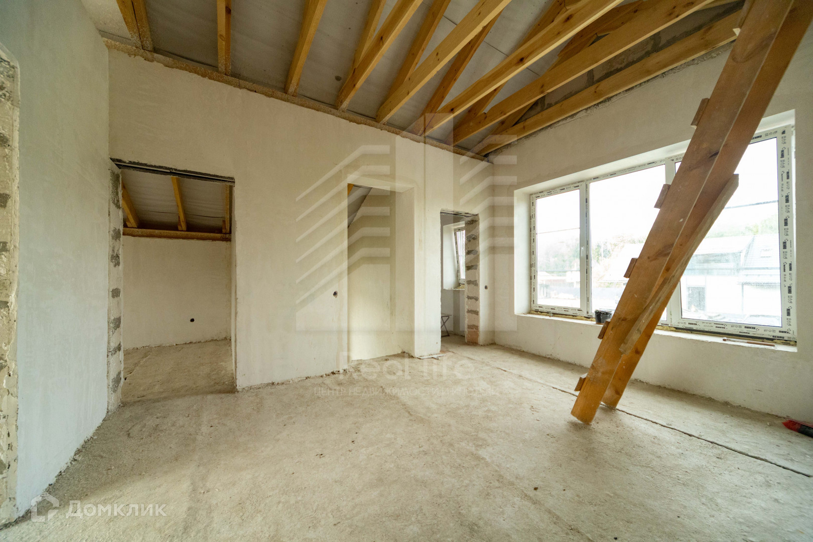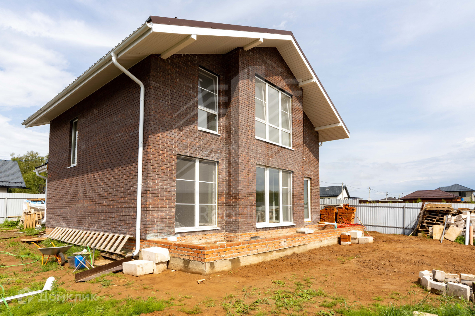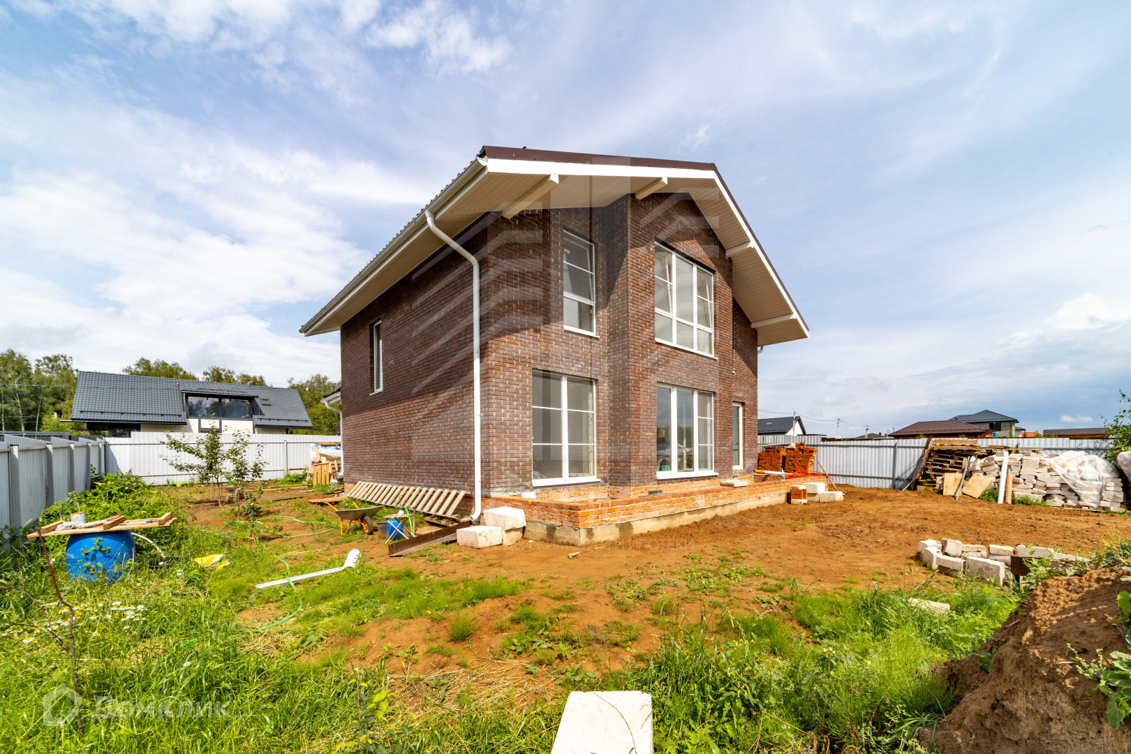 В доме осталось из черновых работ: развести отопление и залить пол. Стены (блоки 400 мм, утеплитель, кирпич) уже подготовлены под чистовую отделку, разведена электрика, вода (скважина 50 метров) и канализация (септик "Астра-8") заведены в дом, софиты под крышей - все делалось для себя и с любовью, ни на чем не экономили.
