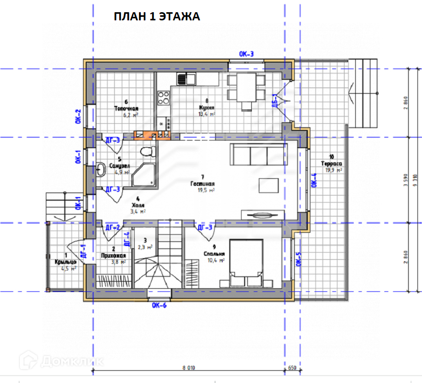 Особое достоинство этого дома - окна Rehau, панорамное остекление и все окна с москитными сетками. Выход из кухни и гостиной на 2ю терассу, во двор, можно устроить перед домом зону барбекю и проводить время с друзьями. Планировка дома позволяет жить семье из нескольких поколений и принимать гостей: 3 спальни наверху + санузел, большая гостиная внизу и гостевая комната + санузел. Под лестницей предусмотрены места хранения, есть отдельная гардеробная. Планировка дома приведена на фото.