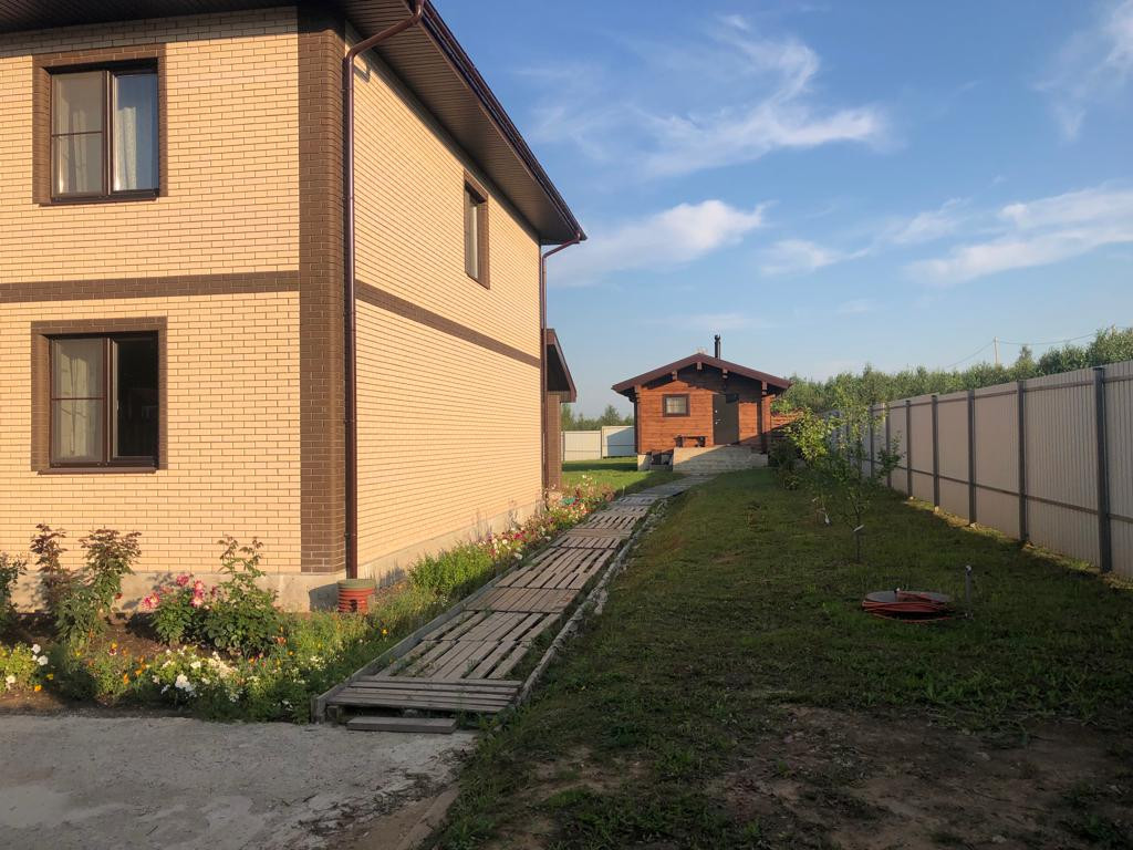 Продаётся двухэтажный дом конец 2021 года постройки из газобетона, облицованный керамическим кирпичом, 236 м2 + 17,5 м2 терраса на участке 15 соток в живописном месте рядом с лесом и речкой. Удобная транспортная доступность до Москвы, 28 км от МКАД по Симферопольскому ш. и трассы М4-Дон. Первый этаж: кухня-гостиная, спальня, санузел, бойлерная. Выход на террасу из гостиной. Второй этаж: 3 спальни, кабинет, гардеробная, санузел. Фундамент и перекрытия монолит. Электричество 45 Квт, полная электроподготовка дома, водоснабжение- скважина, септик, телевидение, интернет, домофон. На участке баня 5х5 из клееного бруса, фруктовые деревья и ягодные кустарники. Участок угловой, один сосед. Газификация в конце 2023 г.
