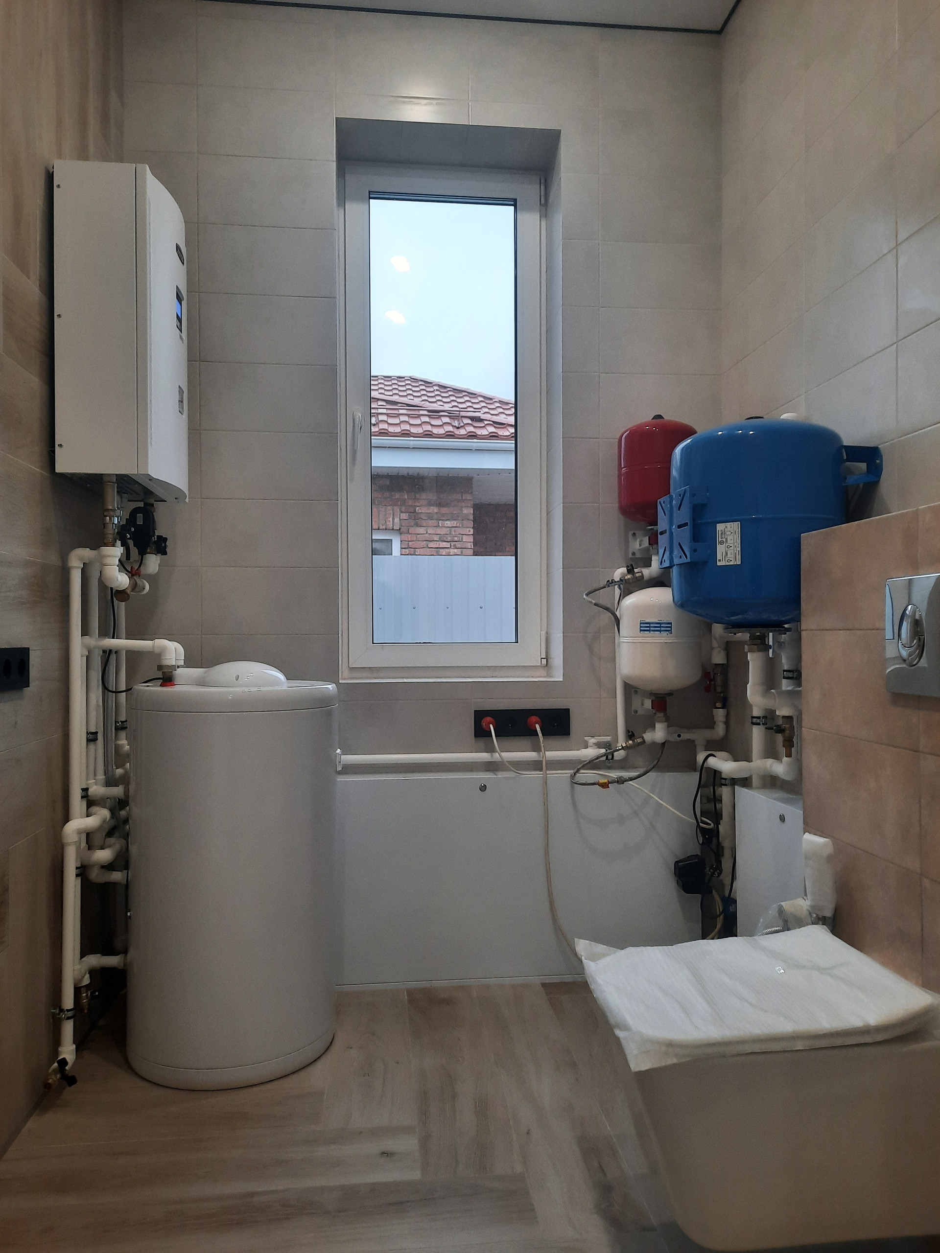 Отопление может быть как электрическим, так и газовым ( труба по границе участка) Теплые полы, бойлер косвенного нагрева.