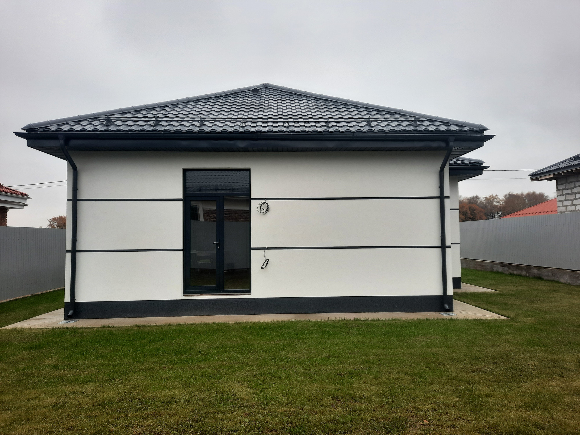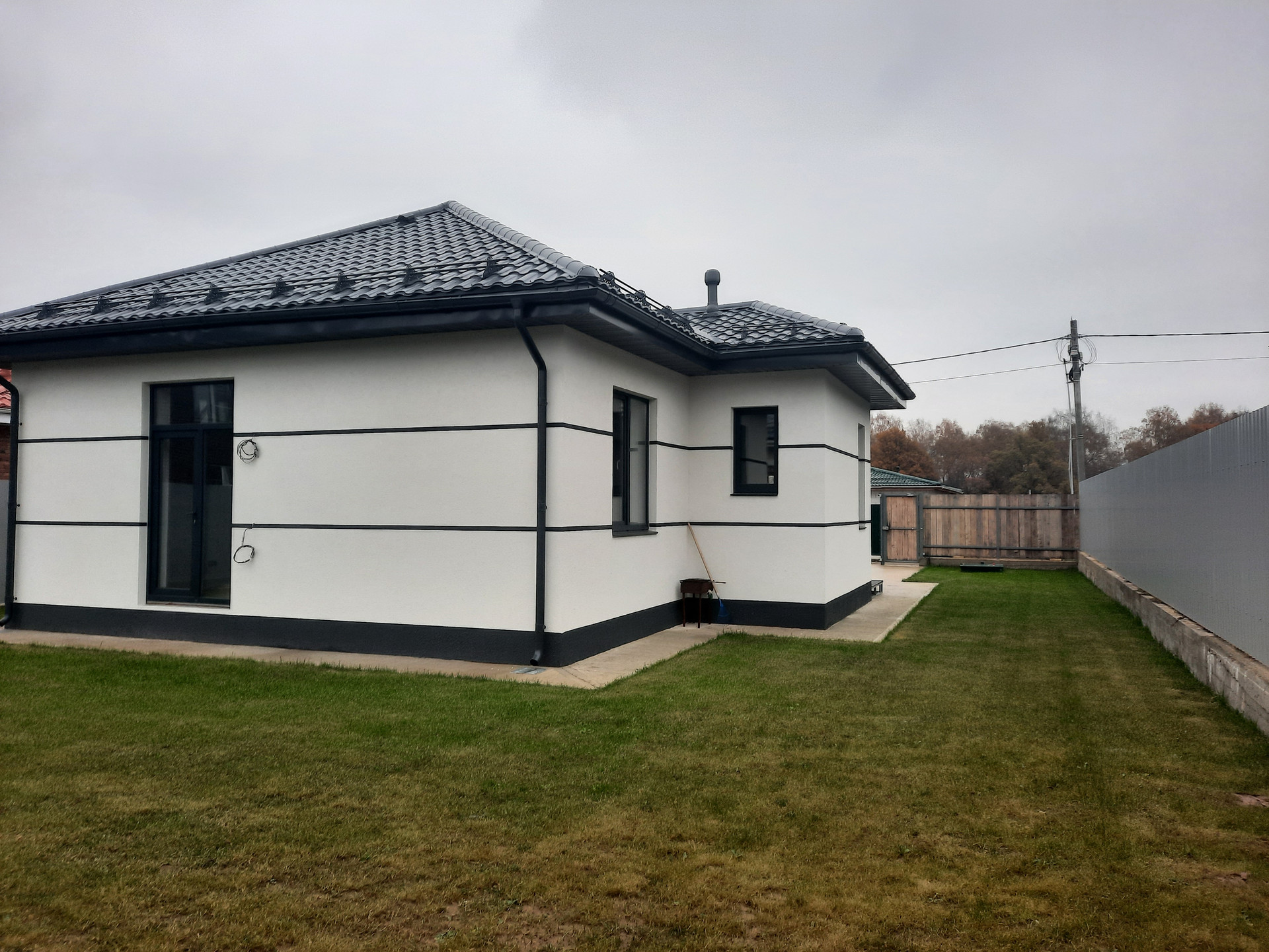 Участок, огороженный фундаментной лентой и имеющий ровную поверхность с дренажной системой, позволит вам создать свой оазис. Фасадная часть участка выполнена из обожженной древесины, шлифованной и пропитанной итальянской пропиткой, что добавляет неповторимый шарм вашему дому. Три других стороны участка были обрезаны специальным профилированным листом толщиной 0,45 мм от ProfList.