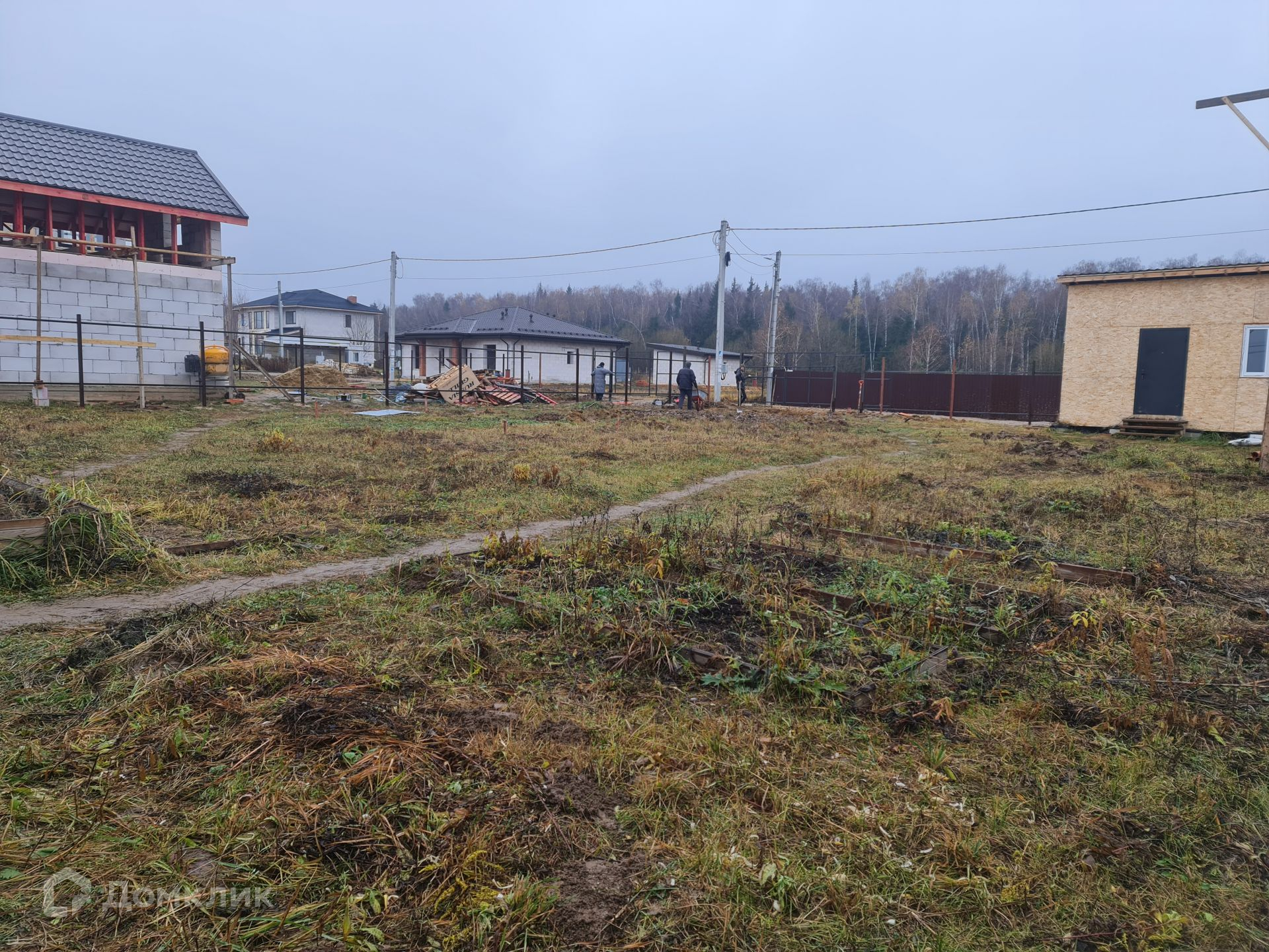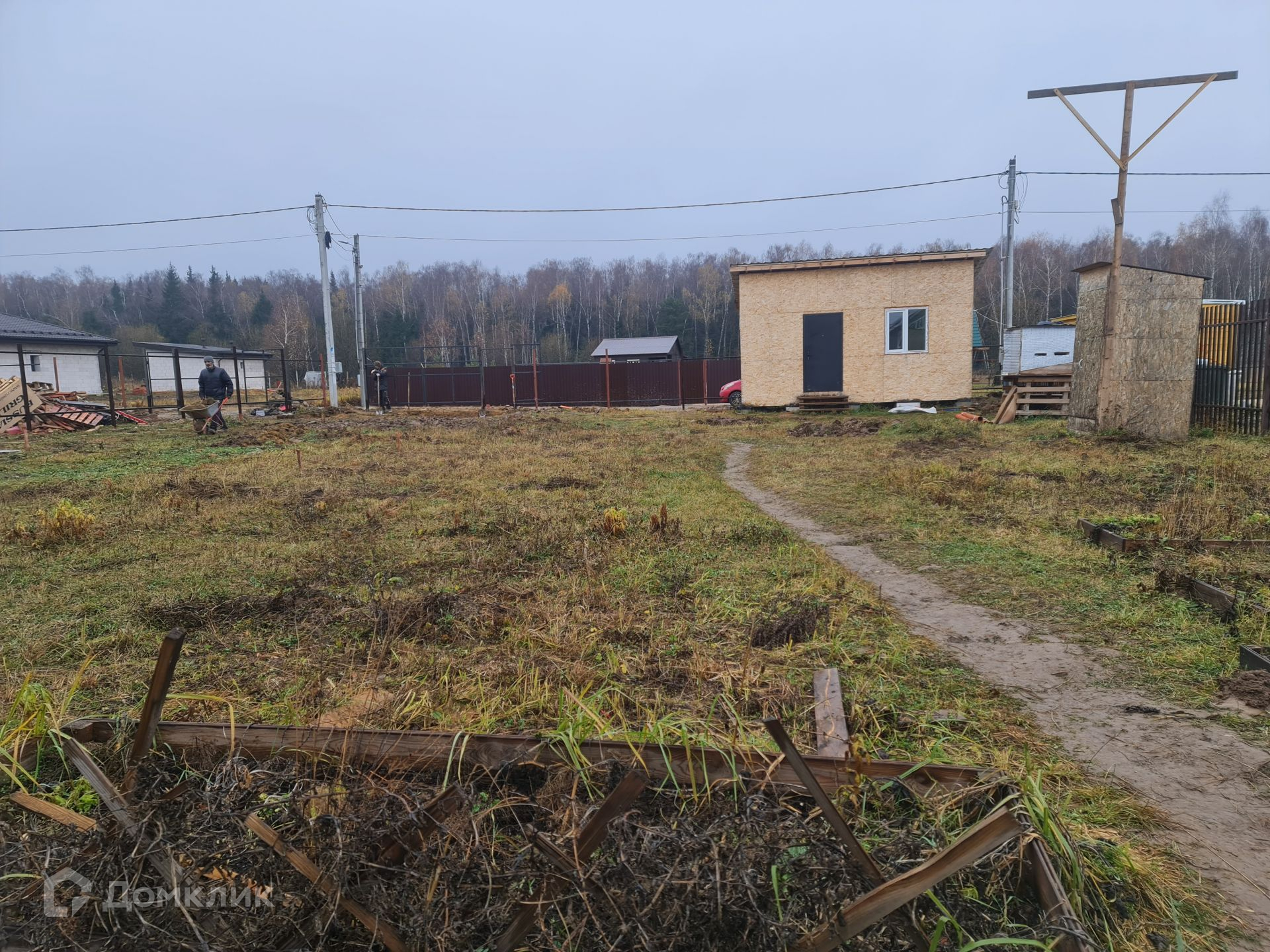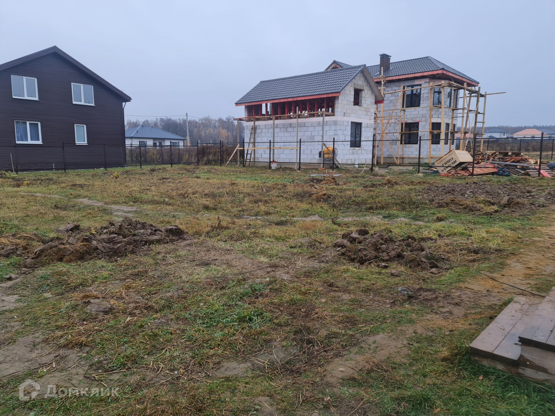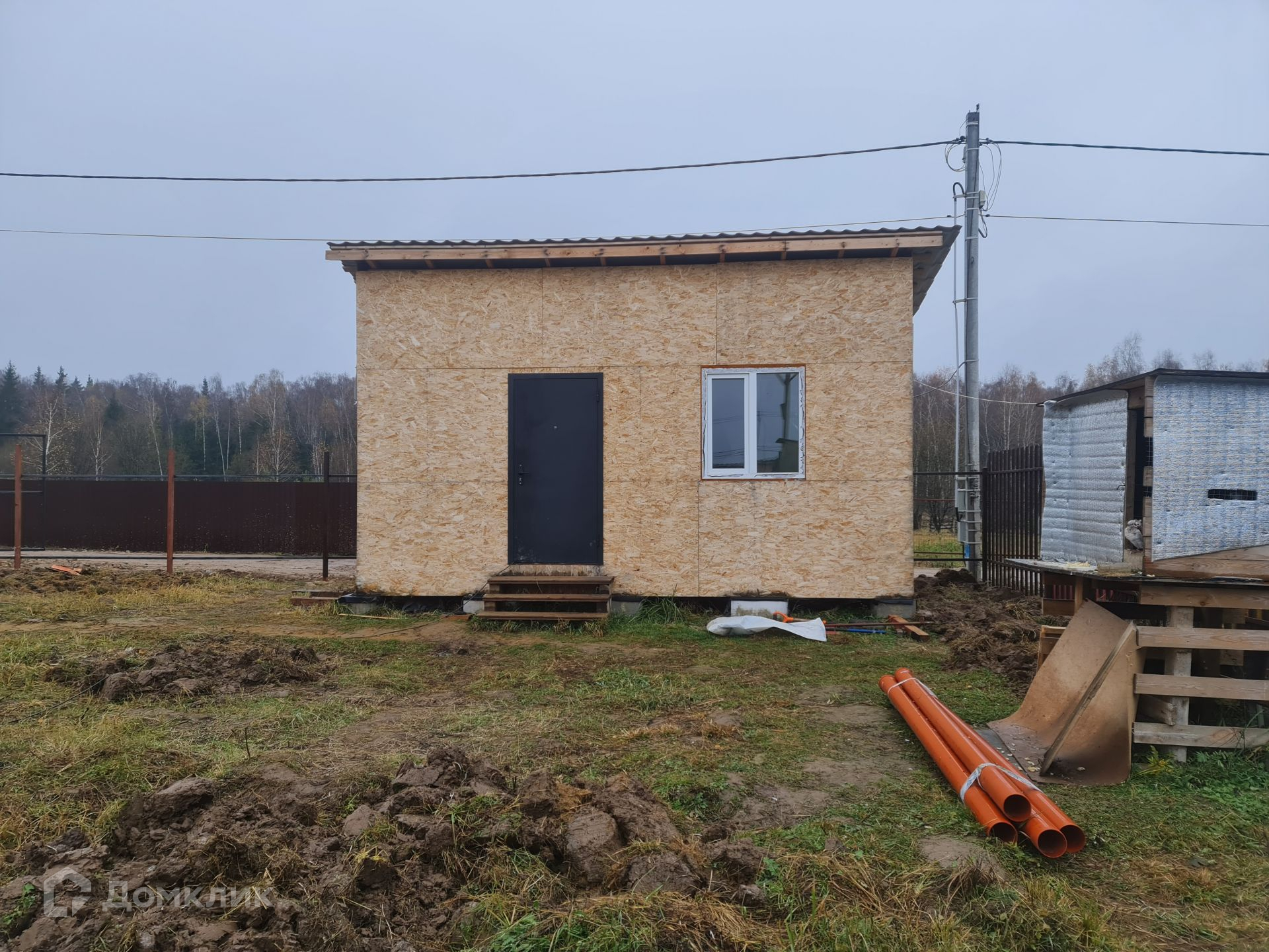 На въезд уложена толстостенная, железная труба шириной 7 м. В ближайшее время будет отсыпана площадка для парковки и входа, шириной 9 м, глубиной 6 м. Установлены и покрашены столбы и лаги для забора, осталось только зашить, задняя и фасадная сторона проф-лист с боков евроштакетник. Установлены столбы на ворота и калитку.