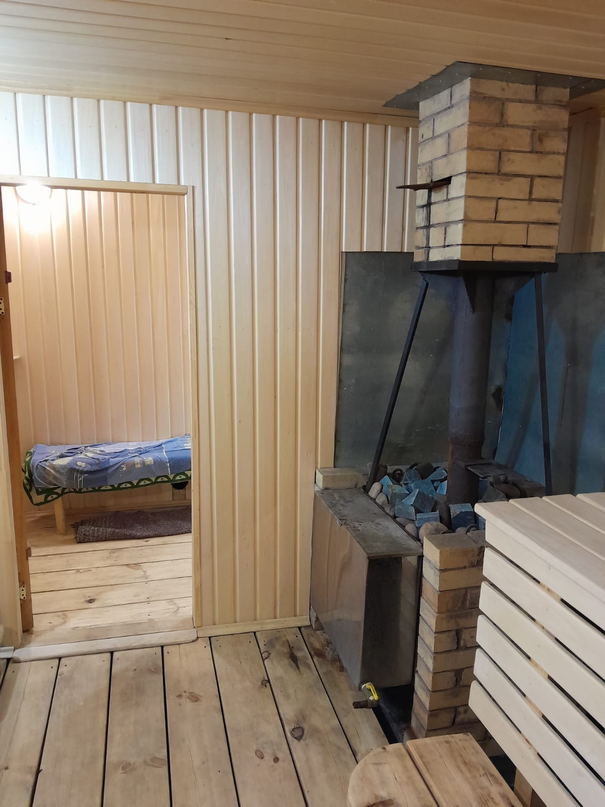 В 2020 году в доме проведен капитальный ремонт, окна толстый стеклопакет с тонировкой (комфортно даже в жаркую погоду), полы ламинат, регулируемое освещение, большая кухня (новая газовая плита, духовой шкаф, посудомоечная машина Bosch, вытяжка), зал, две спальни, прихожая, ванная комната с огромной комфортной ванной, погреб, веранда и баня. Входная дверь с терморазрывом. Автономное газовое отопление (двухконтурный котел), газ и вода централизовано, канализация, электричество, туалет. Проведен интернет. Имеется уличное освещение. Участок ровный, прямоугольной формы, на нем расположены гараж со смотровой ямой, вторая баня, дровяник, второй погреб, уличный туалет, огород, садовые деревья, кустарники. Один собственник, без обременений.