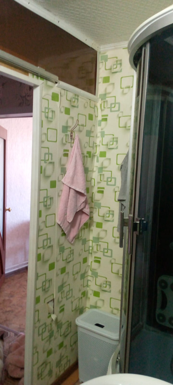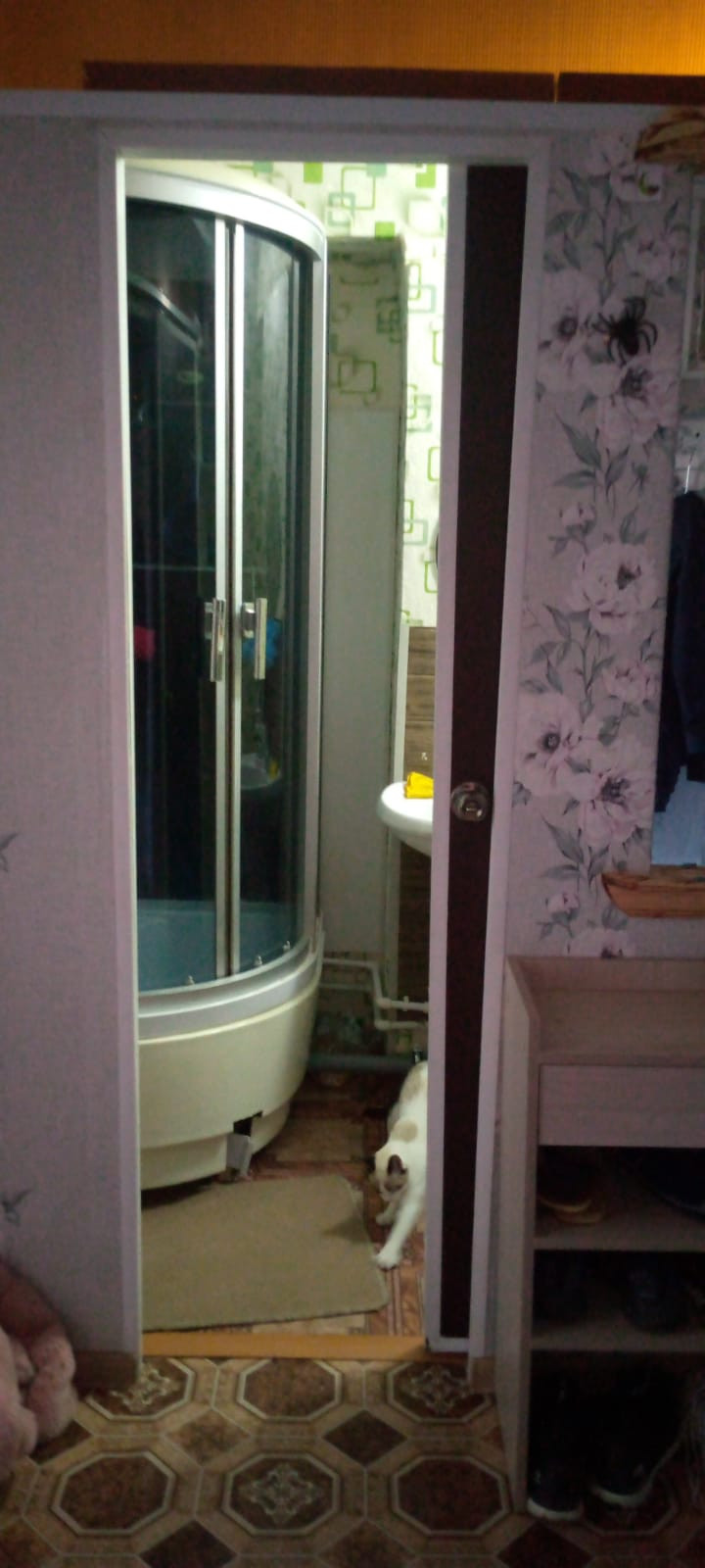 Есть душевaя кабинa, унитaз и мойкa.