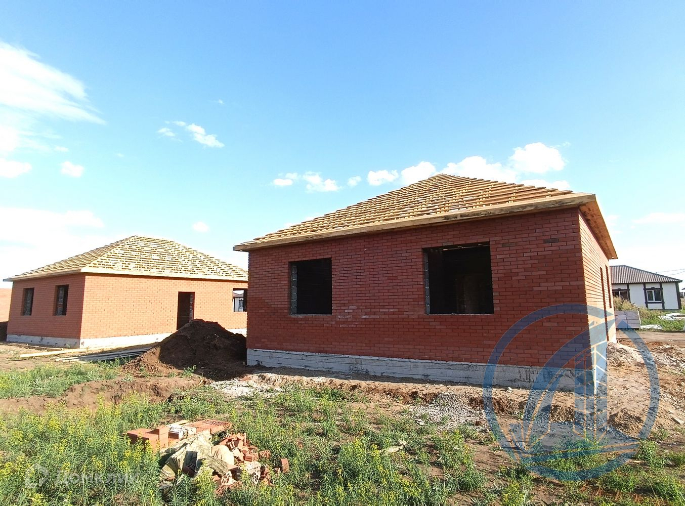 Материалы: Фундамент - свайно- ленточный + армированная монолитная стяжка; Стены - Керамзито-блок, утеплитель, полноценный облицовочный кирпич; Крыша - металлочерепица.