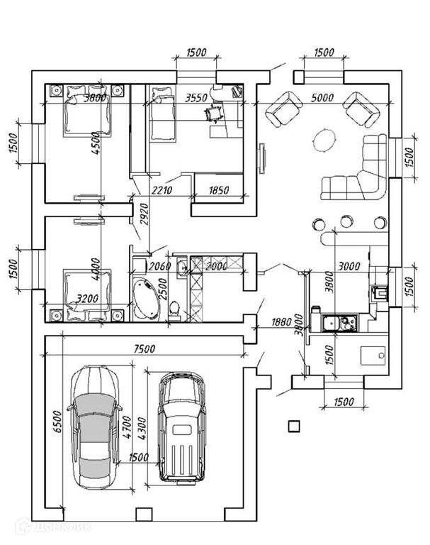 + площадь гаража 25кв.м.;