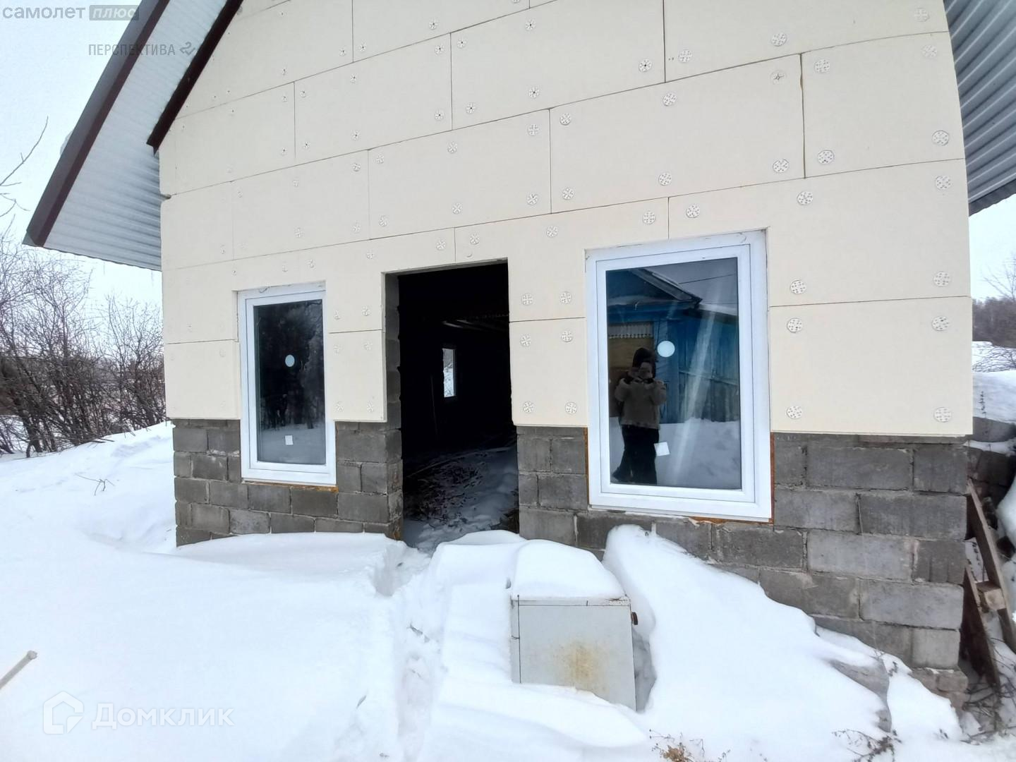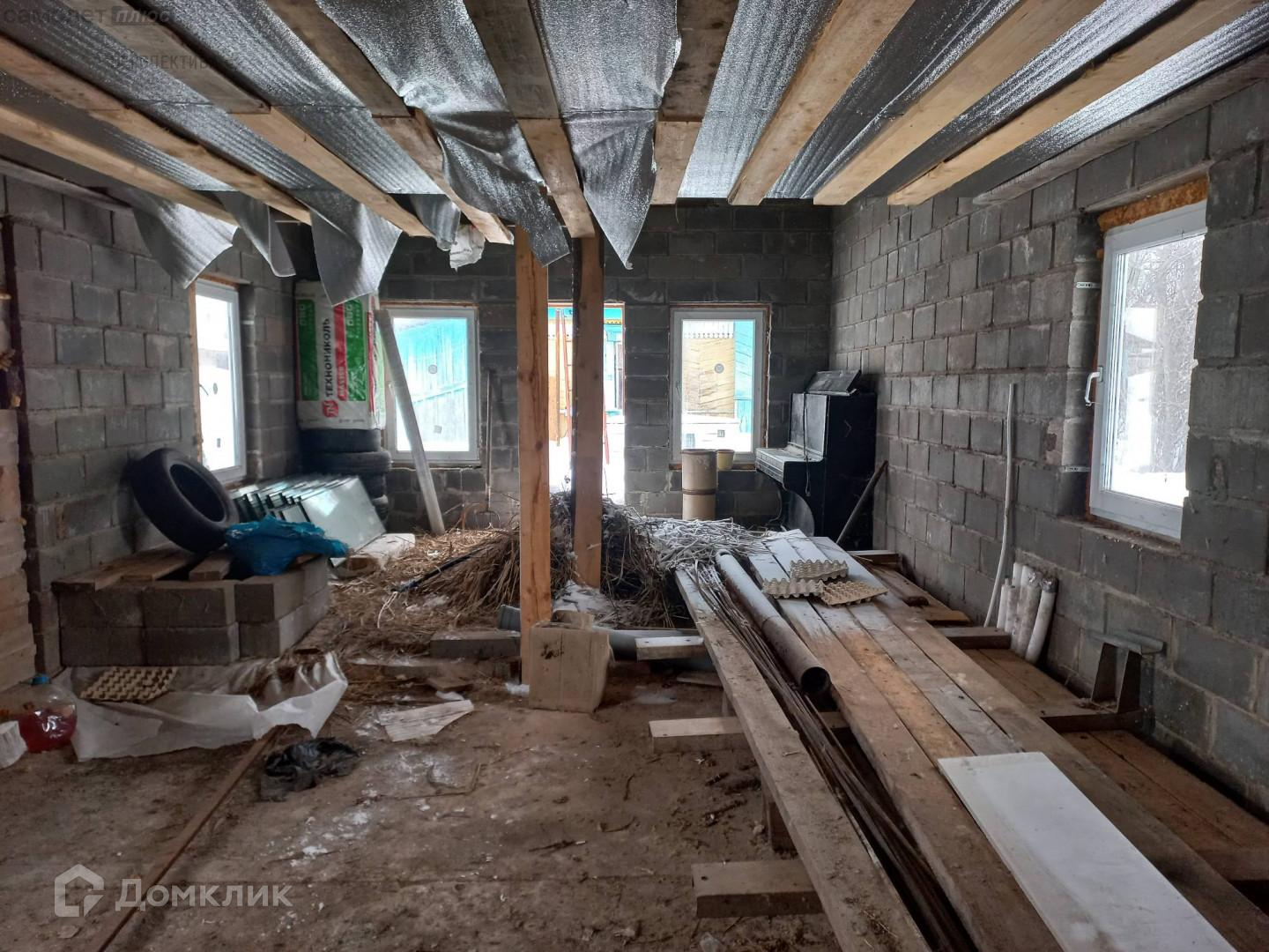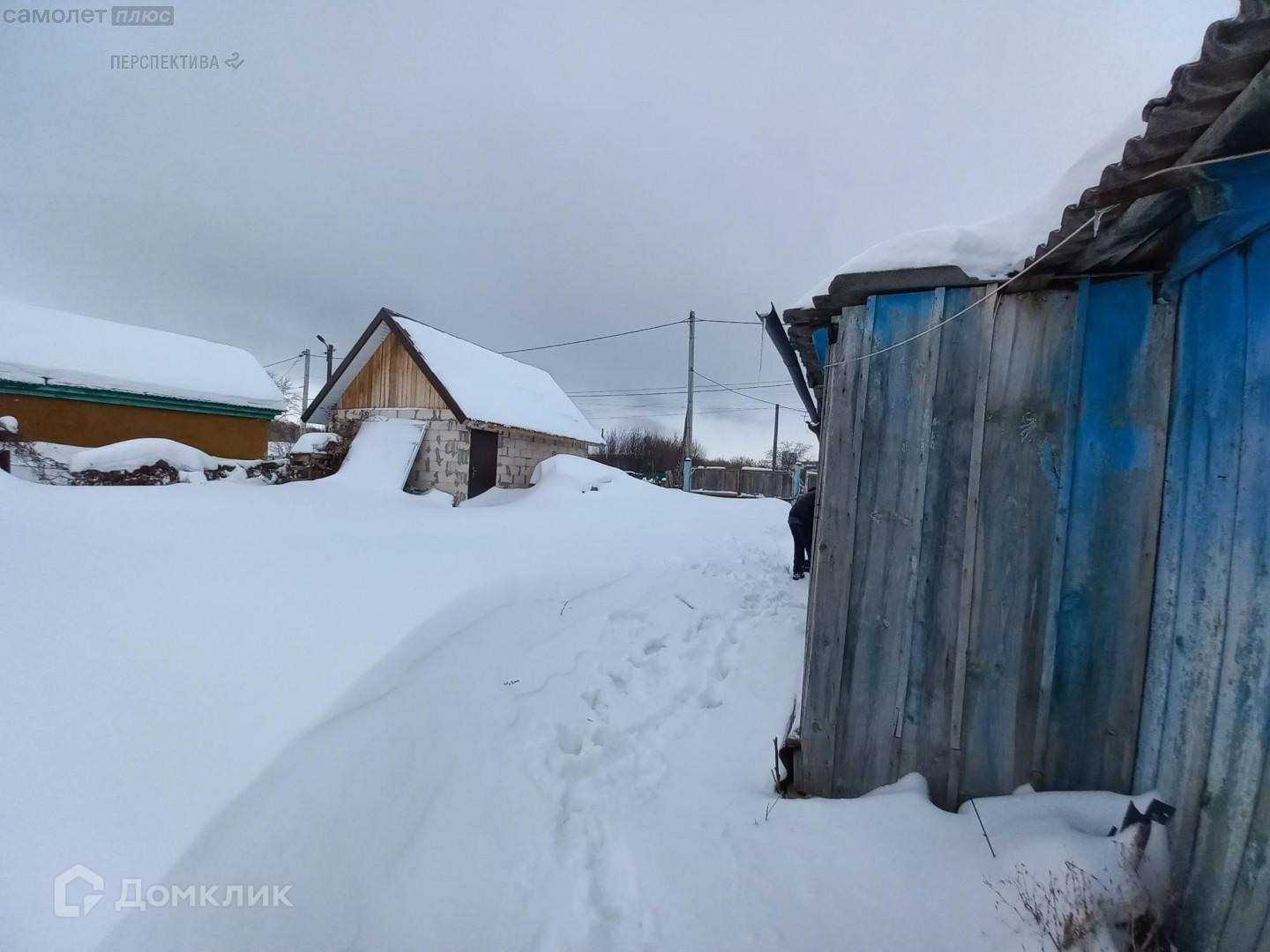 На территории двора есть новый гараж и возведенная из газоблоков баня (под высокой крышей и установленными окнами).