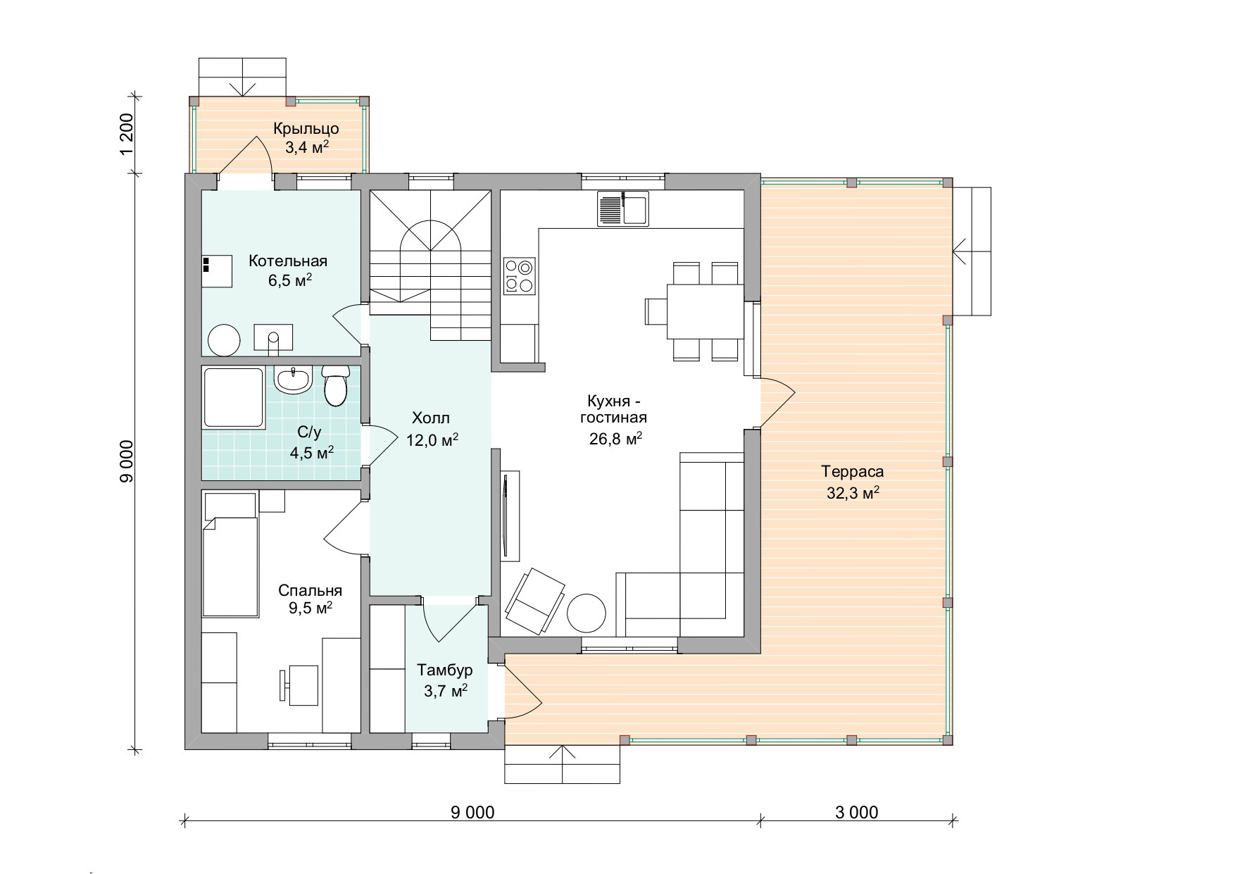 Размеры 12х10,2 м;