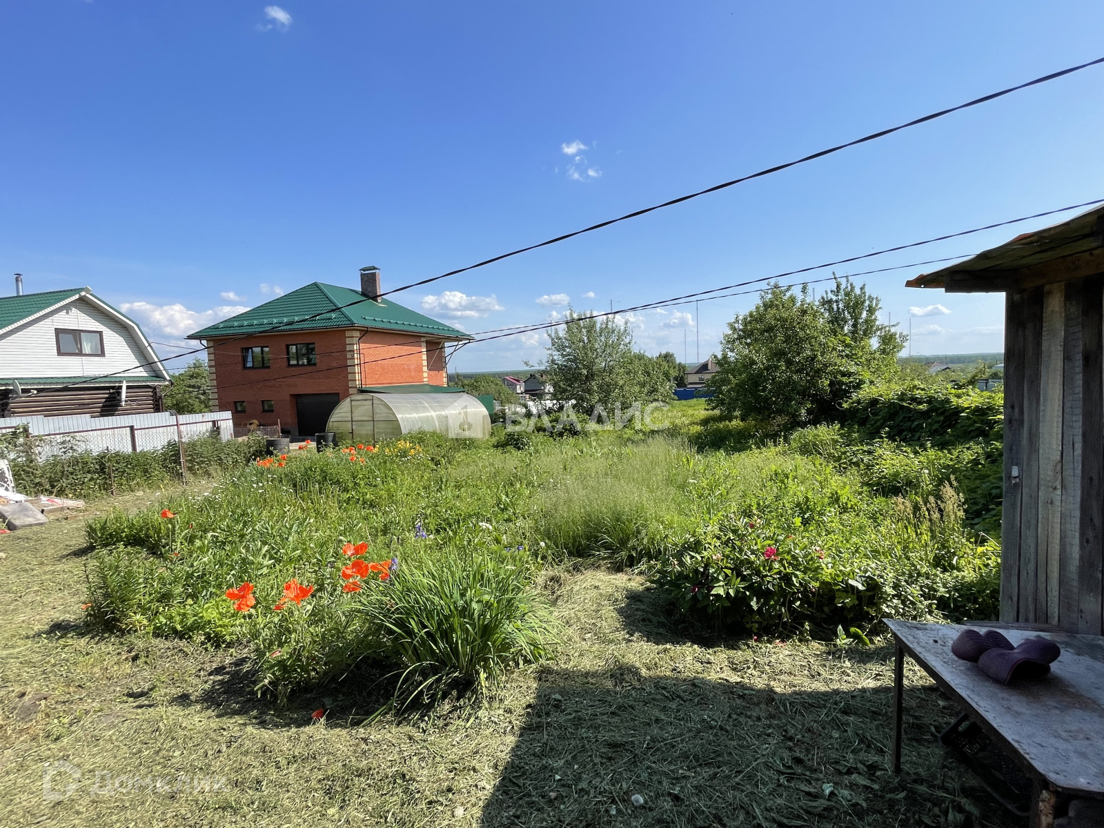 На участке посажены плодовые деревья (вишня, груша, смородина, яблони), установлена теплица и имеется огород.
