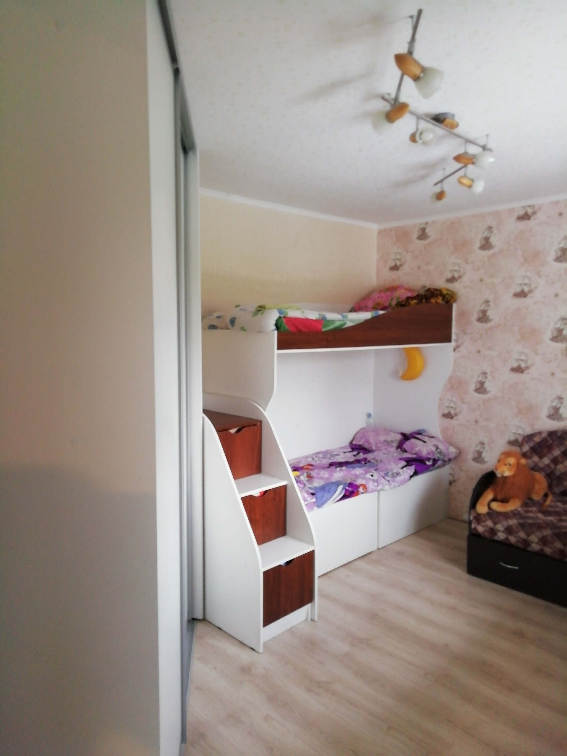 На втором этаже – гостиная, три комнаты, санузел.