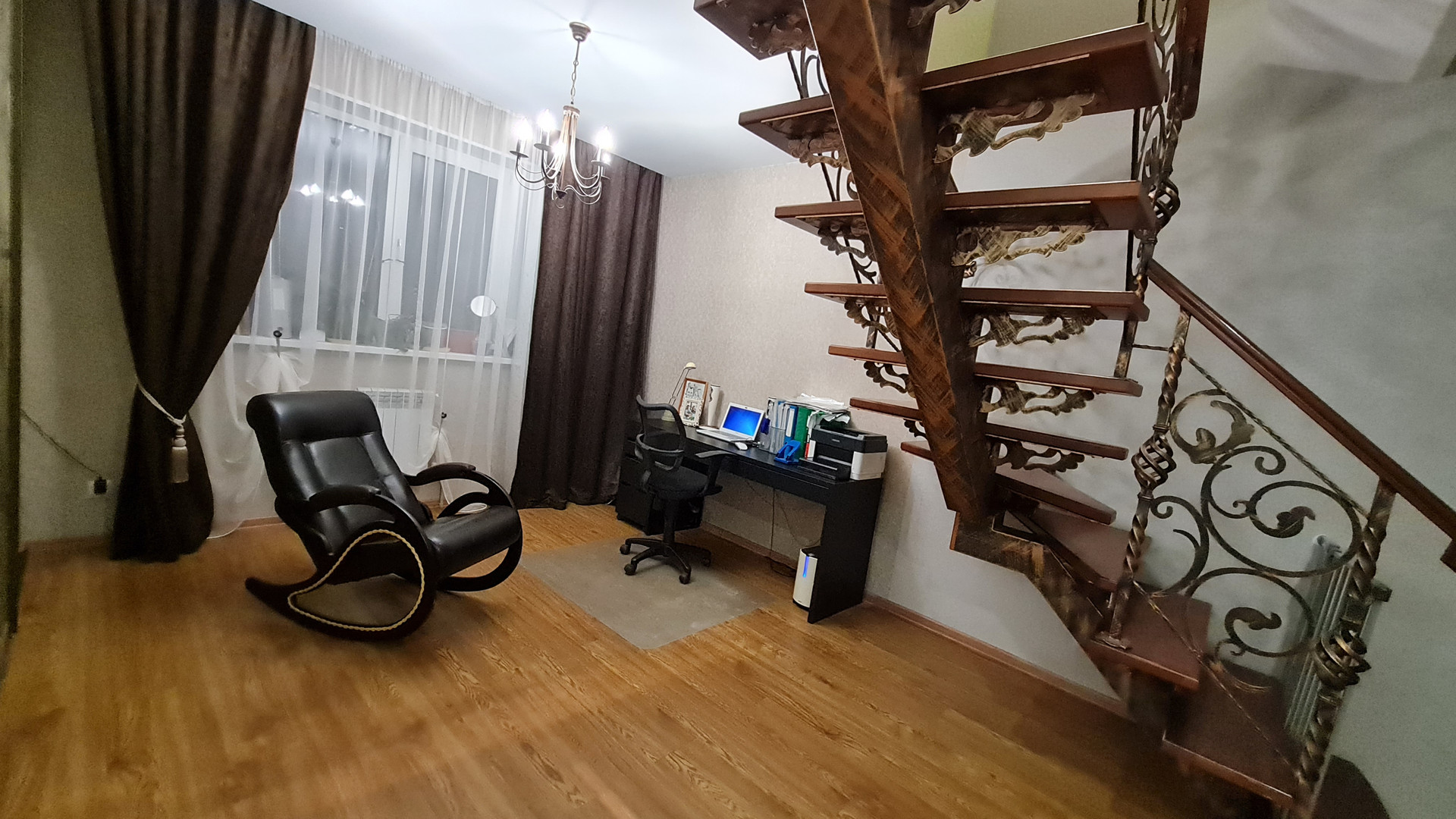 1 этаж -просторная кухня-гостинная 30 м2, прихожая, рабочая зона, с/узел с душевой кабиной.