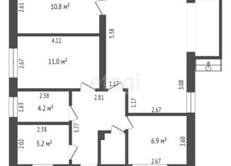 Общая площадь: 58.8 м2