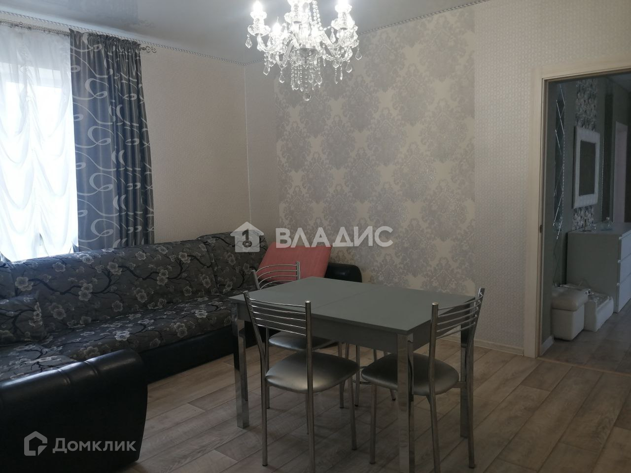 В комнате большой раскладной диван, стол, шкаф, во второй раскладной диван, стол, зеркальный гардеробный шкаф, комод.