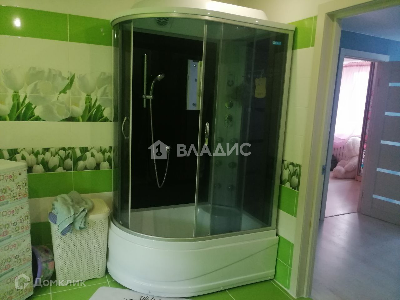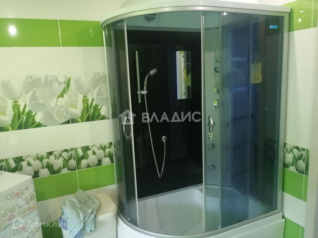 Санузел на втором этаже: туалет, новая (2022) большая душевая кабина, стиральная машина.