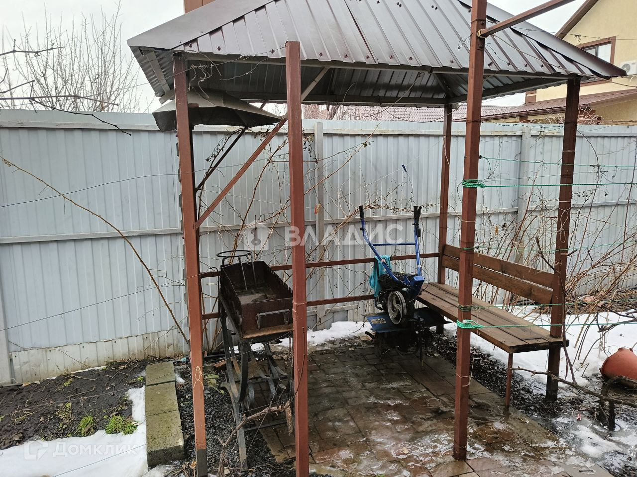 Участок ухоженный с плодовыми деревьями и виноградником. Есть дровница для хранения дров и сарайчик для хранения садового инвентаря. Парковочное место на 2 машины с навесом и автоматические ворота, обязательно пригодятся водителю атомобиля. На участке есть все для семейного отдыха. Просторная веранда с отдельным входом в столовую. Рядом беседка для барбекю. Есть отдельное строение под летнюю кухню и мастерскую. Вход в летнюю кухню расположен рядом с верандой, что очень удобно для летних посиделок на воздухе. В мастерскую отдельный вход, здесь есть все для человека «с руками». В мастерской установлена лестница на чердак, с большим местом для хранения чего-угодно.