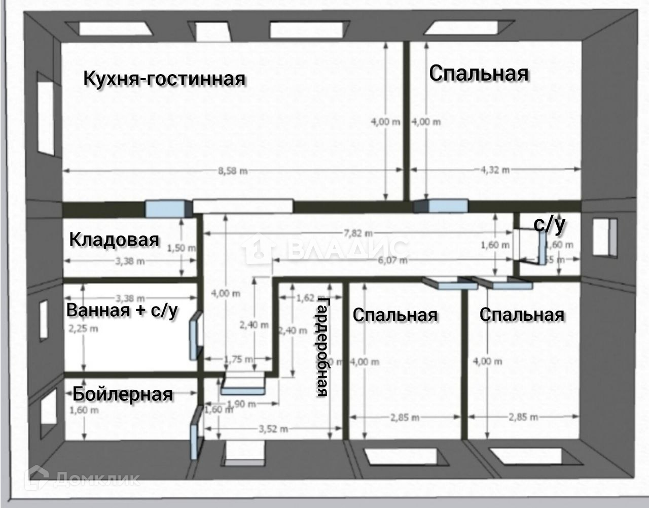 Общая площадь 125 м2. Дом с грамотной планировкой: 3 изолированные светлые спальни, дают возможность каждому члену семьи иметь свое личное пространство и место для отдыха и сна. Гардеробная, бойлерная, ванная комната, 2 раздельный с/у.