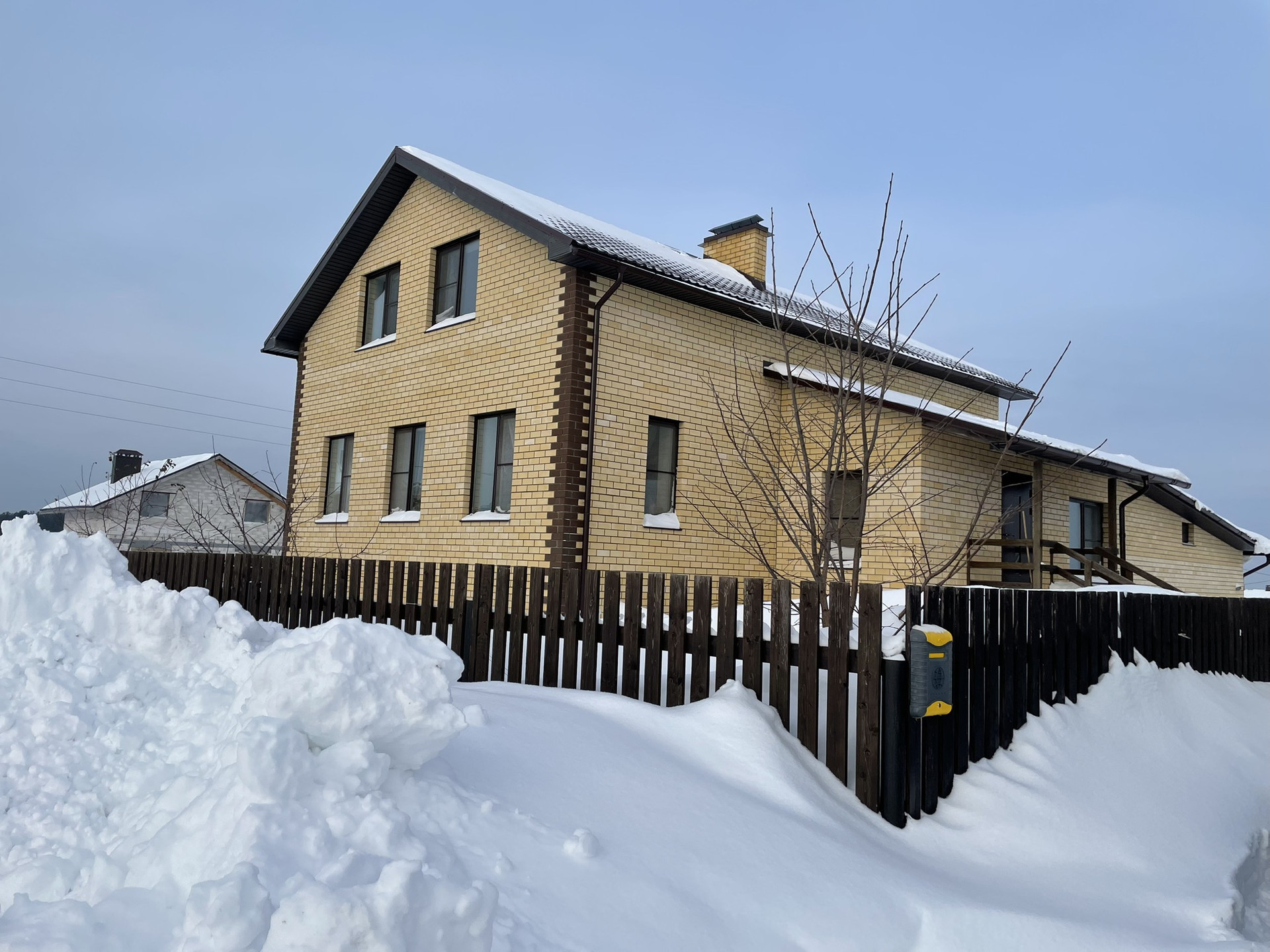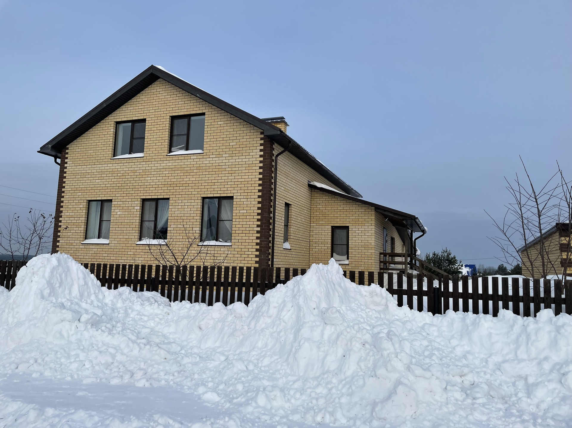 Дом построен в 2017 году из газоблоков, облицован керамическим кирпичом; жб плиты перекрытий на 1 и 2 этажах; крыша-металлочерепица. Высота потолков 3,1 м.