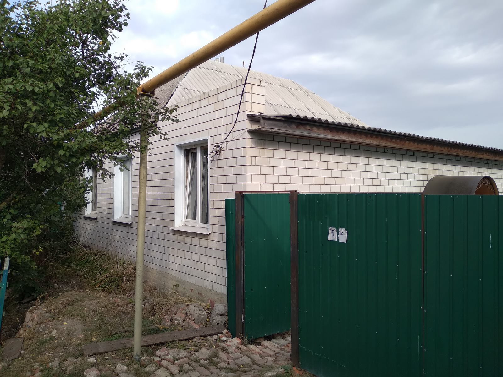 Дом шлакоблочный, пристройка пеноблок, обложен кирпичом, крыша шифер, 1970 год постройки,  68/48/8 кв.м., две жилых комнаты, кухня, коридор, сан.узел. Коммуникации (газ, свет, отопление газовое, центральный водопровод проходит рядом с домом, есть возможность подключения). Дом в жилом состоянии, окна ПВХ, полы деревянные, пристройка под черновую самоотделку. Надворные постройки блочно-кирпичные: сарай и погреба. Участок 25 соток, двор огорожен, сад и огород. Дом расположен в центре села, все в шаговой доступности. В селе: средняя школа, детский сад, администрация, магазины, храм, ДК, ФОК. Хорошее место для ЛПХ. Рассматривается различная форма оплаты, торг при осмотре.