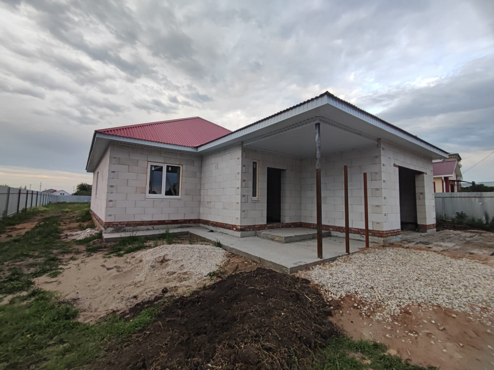 продаю дом на стадии строительств, предчистовая отделка в нее входит, проводка ,штукатурка, теплый пол + батареи газовое отопление, чистовая стяжка пола, септик, отмостка вокруг дома.Теплый гараж с автоматическими воротами, Забор из проф листа. Площадь 100 метров