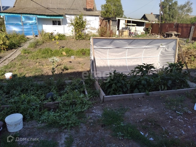 Участок ровный, 2 огорода, забор металлический, 2 теплых сарая для содержания животных, глубокий вместительный погреб. На участке много плодово-ягодных кустарников, теплица 6*8 м, под пленкой, кирпичный гараж со смотровой ямой, беседка.
