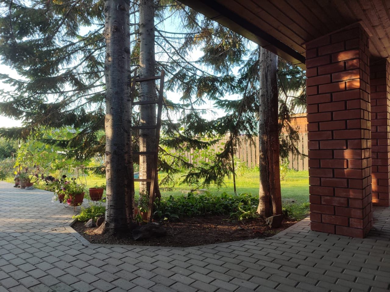 Большая парковка на 3 автомобиля с тротуарной плиткой. Есть возможность газификации дома.