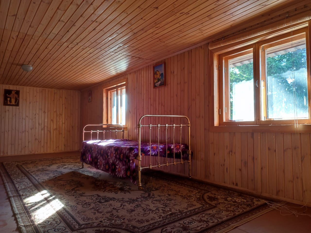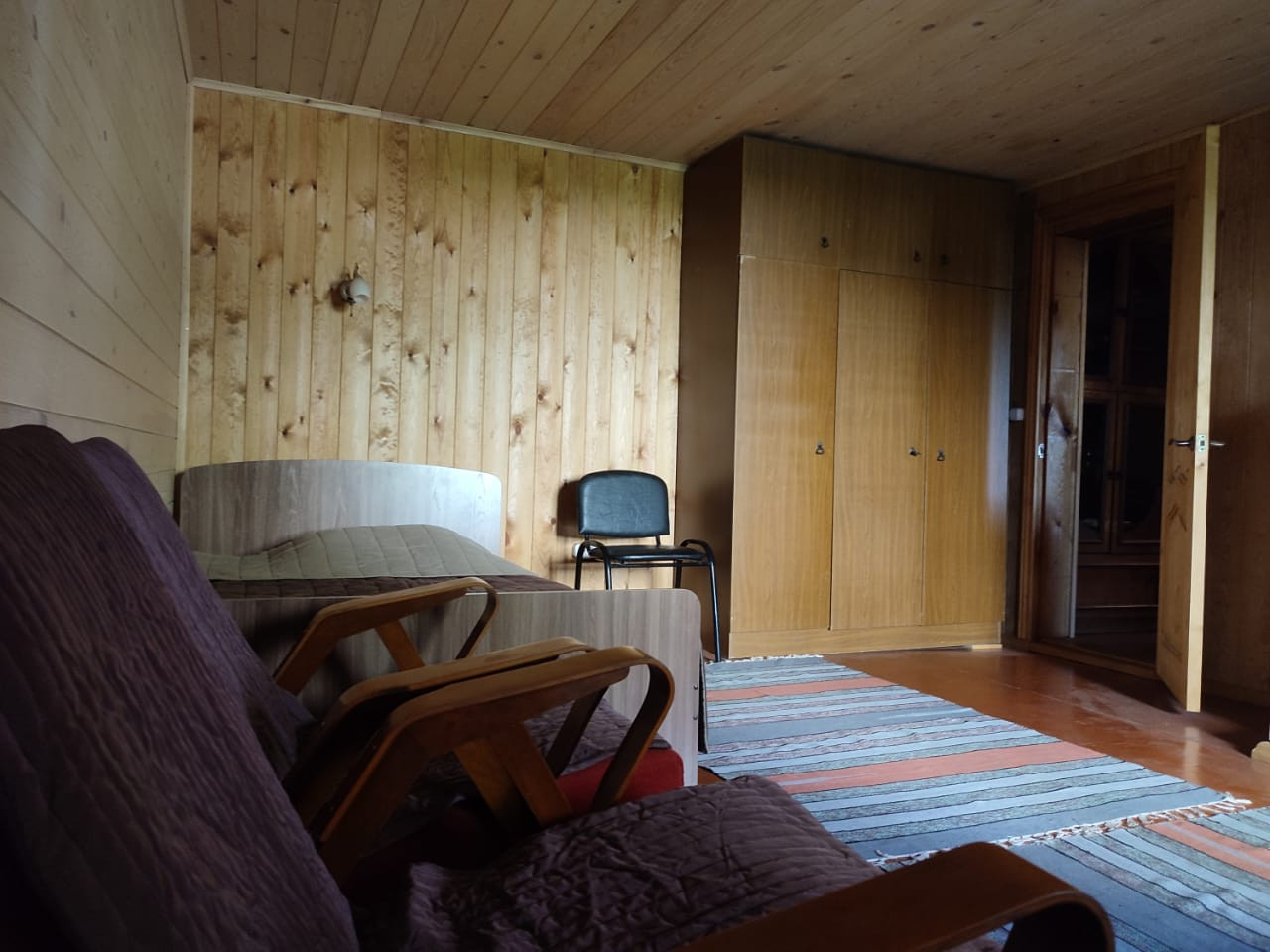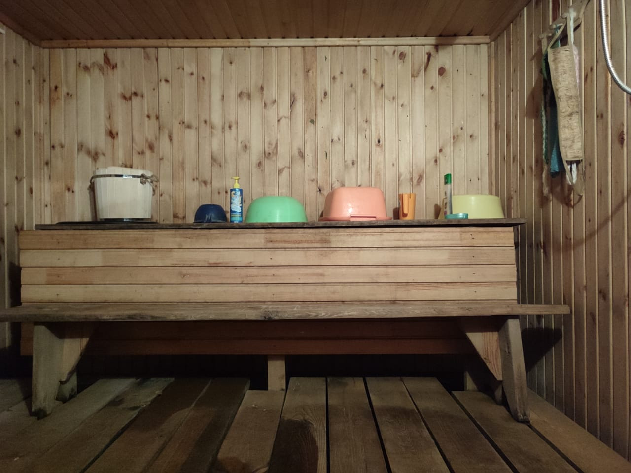 Баня 2.5х3 м, большой предбанник, душ в бане, гараж 8х3 м со смотровой ямой и стеллажами, собственная скважина с питьевой водой, кирпичный туалет. Вода заведена в дом, баню и проведена по участку. Для внешней отделки дома, бани и гаража использована сосновая имитация бруса.