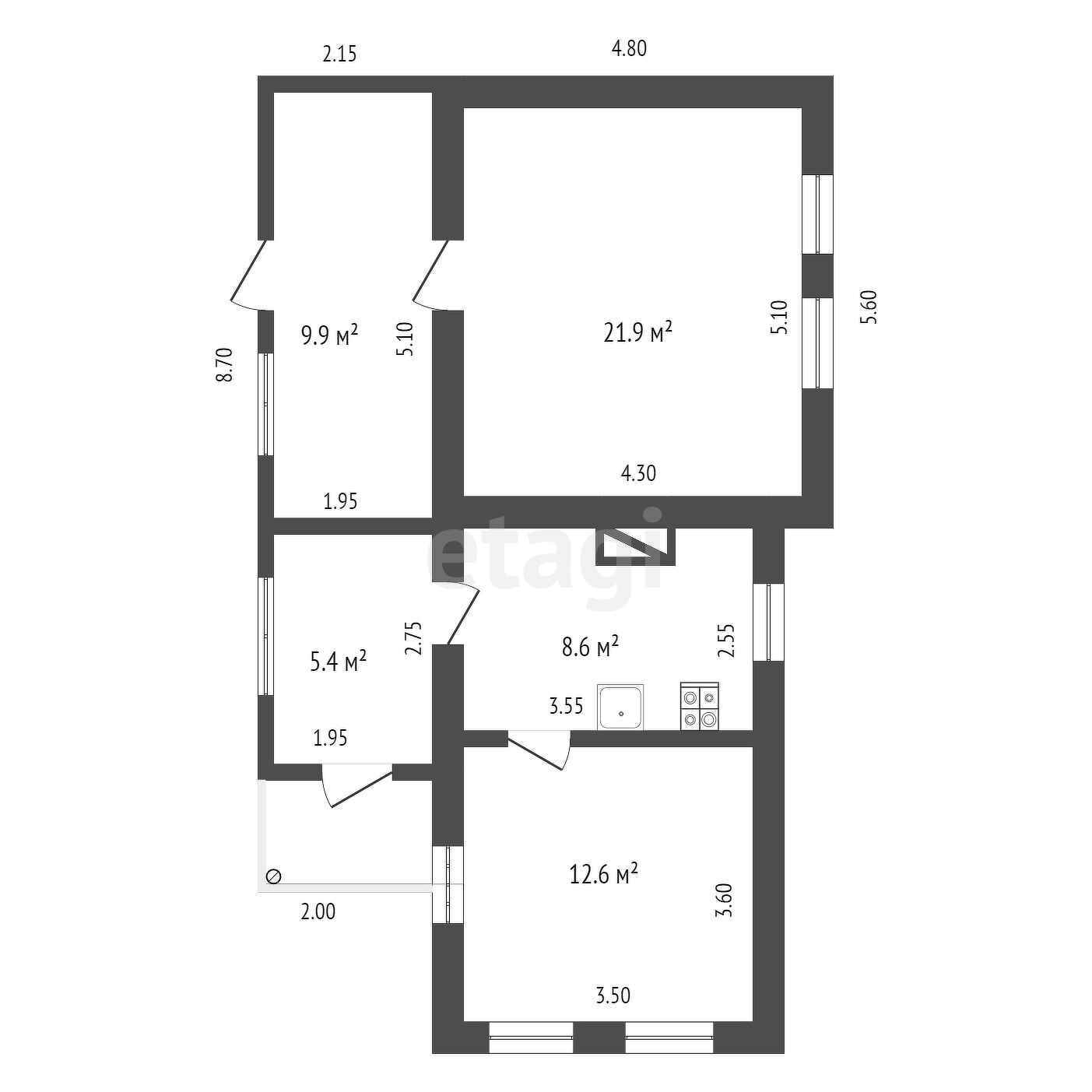 Общая площадь 58.4 м2