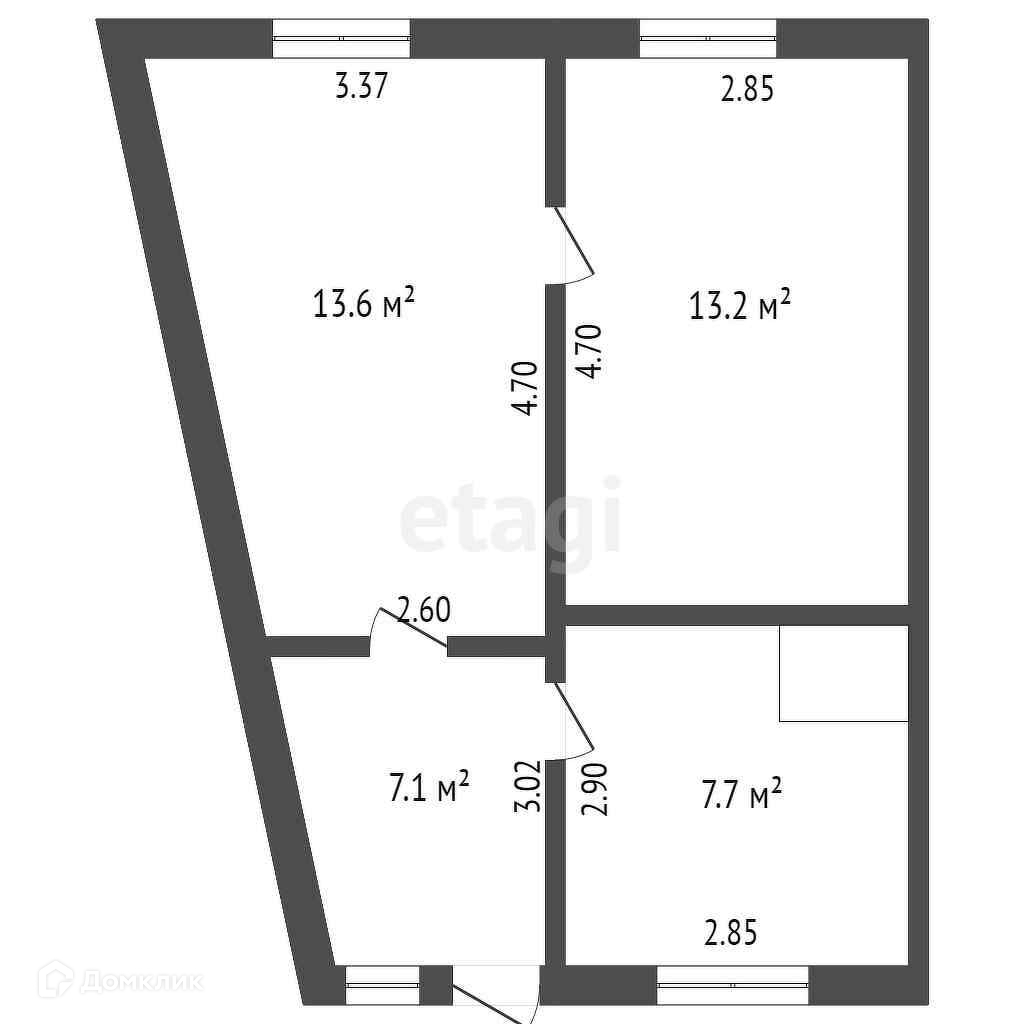 Квартира, общей площадью 43,6 кв.м., 2 комнаты.