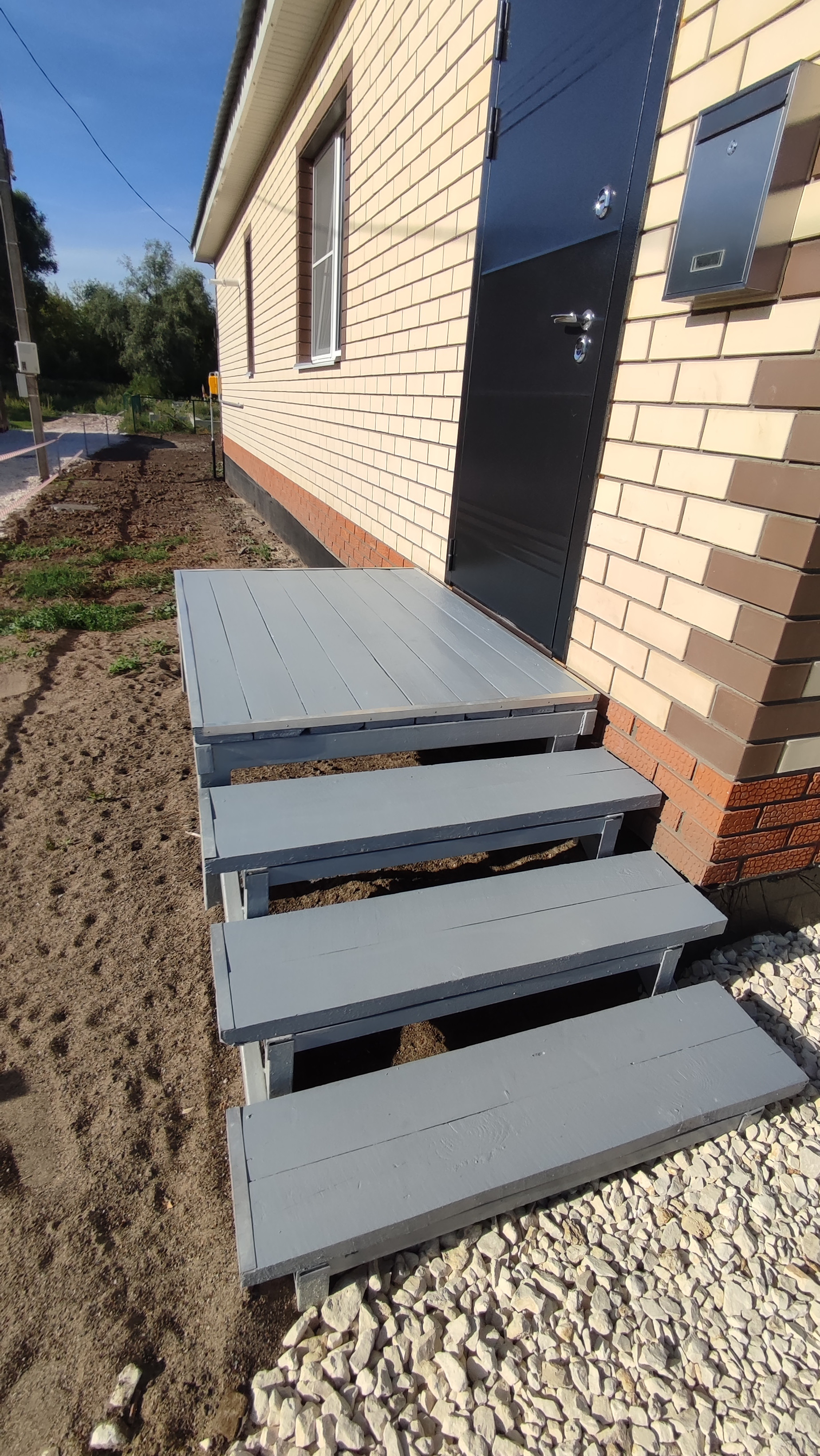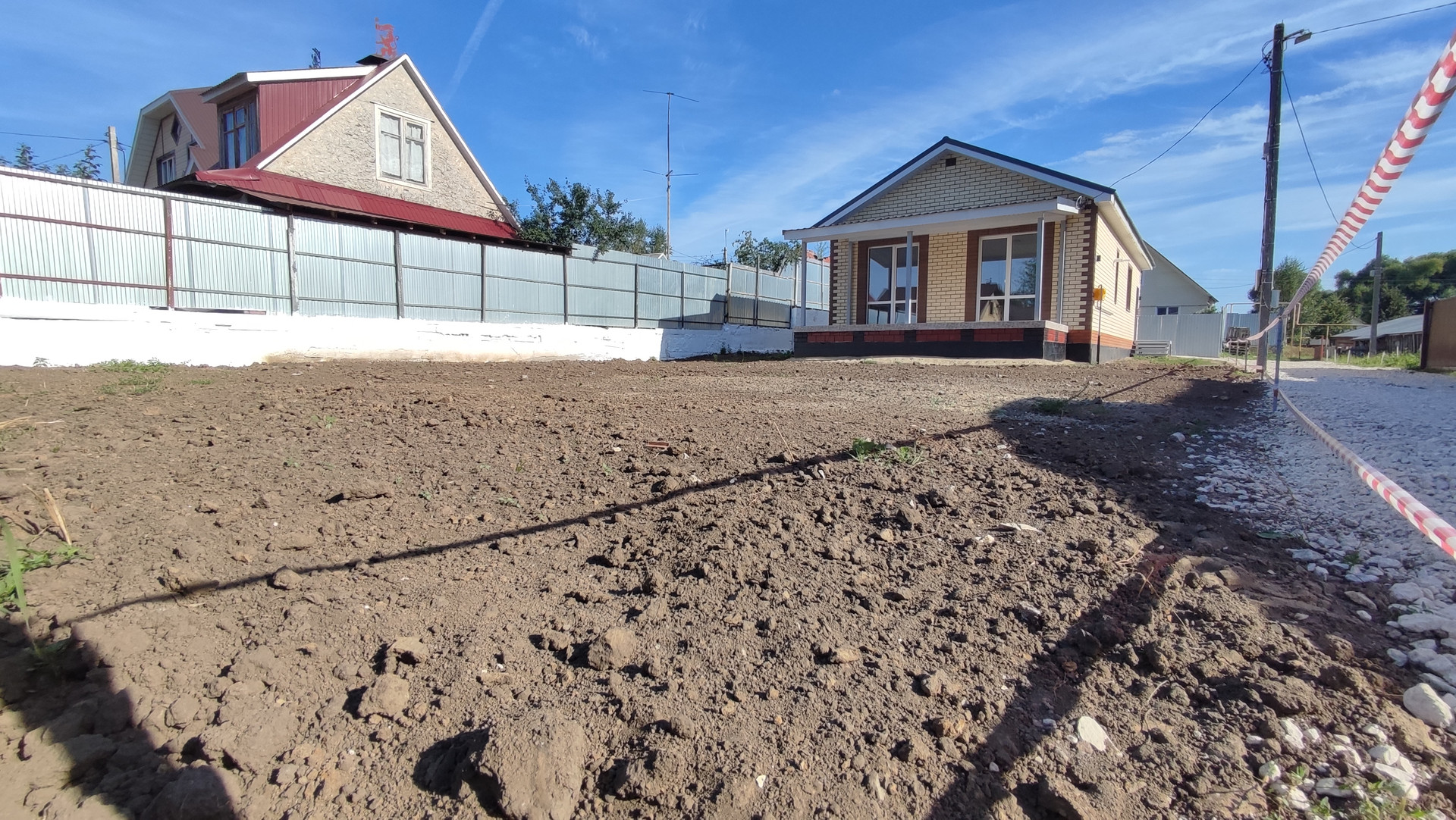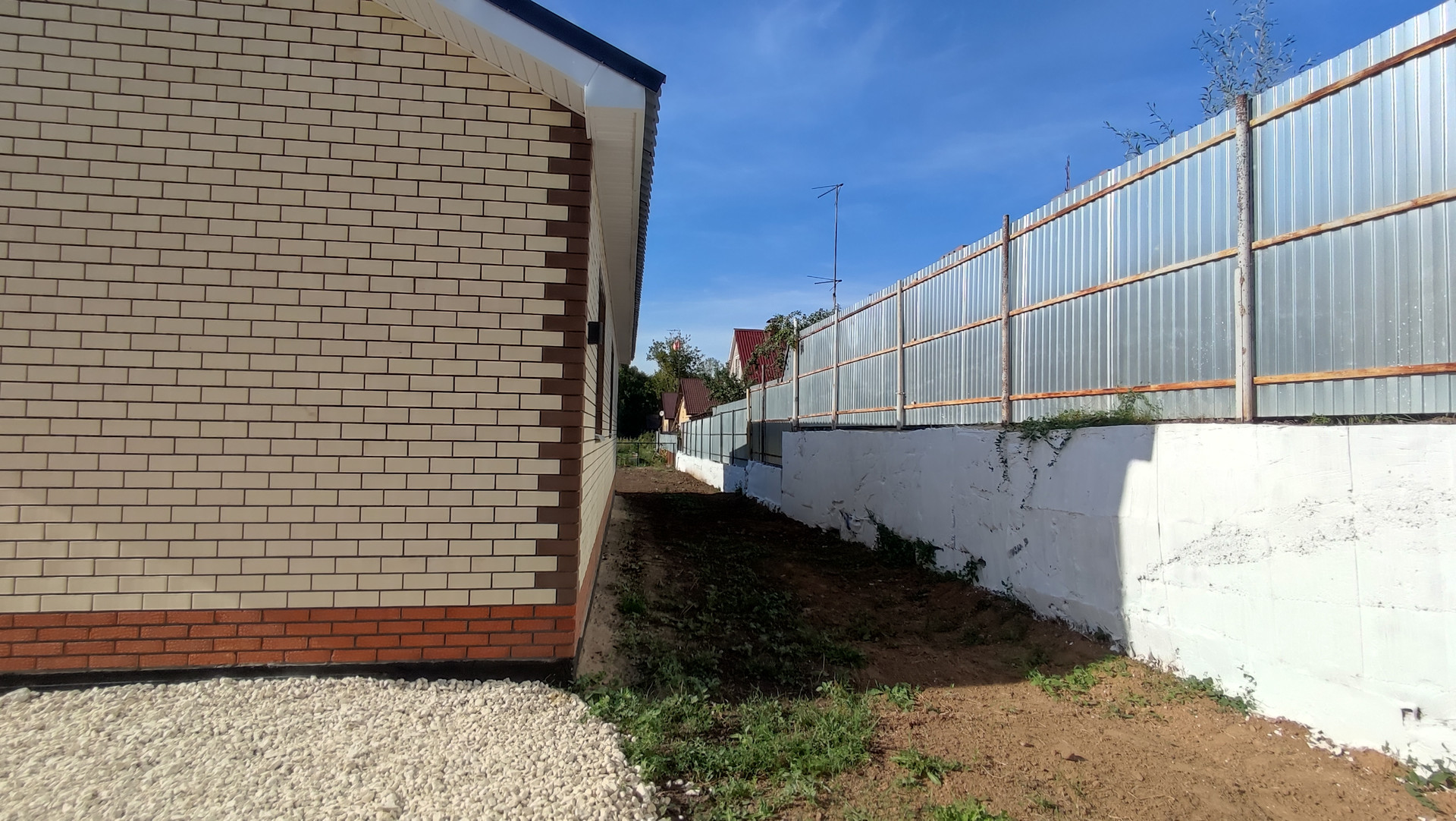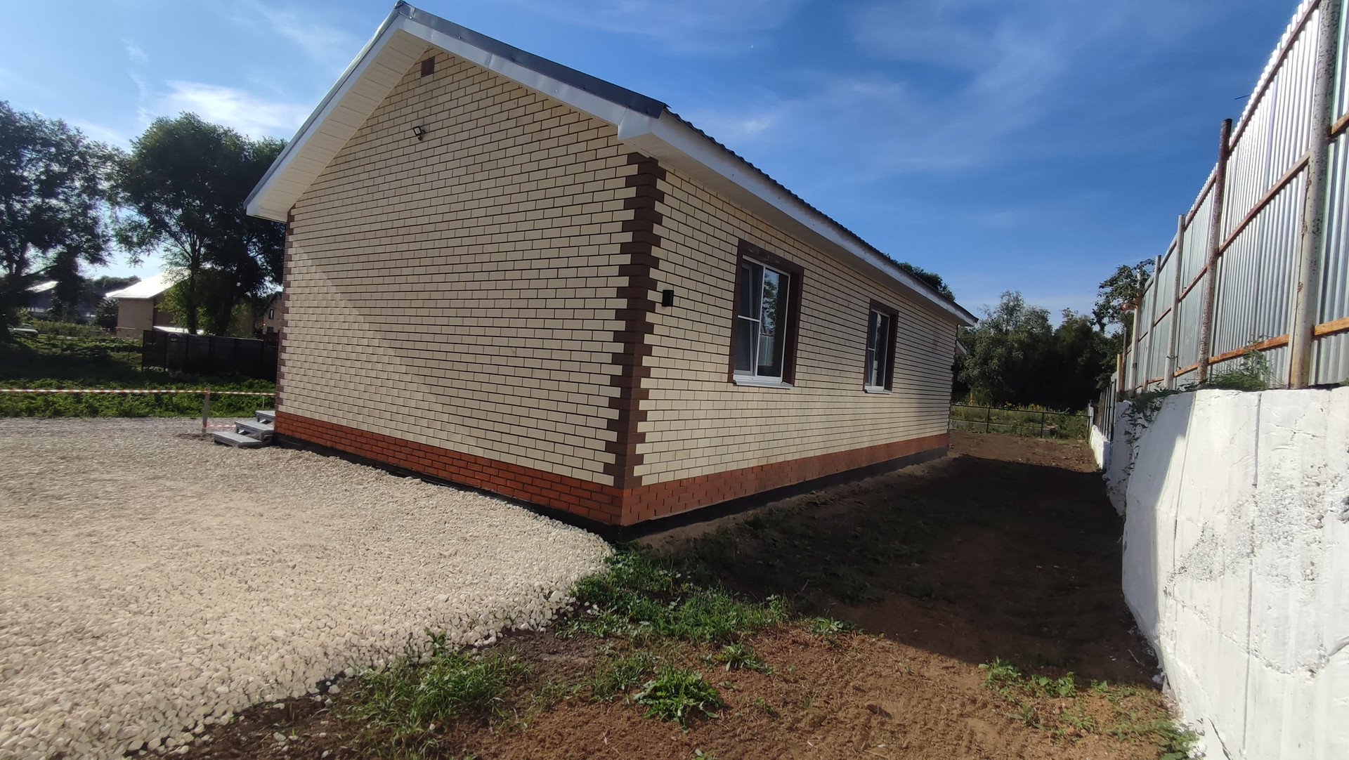 •    Дорога вдоль дома уложена щебнем