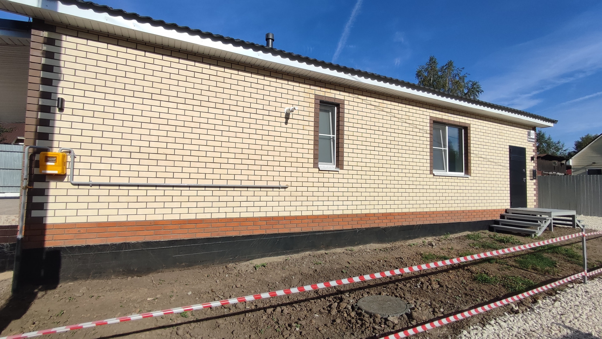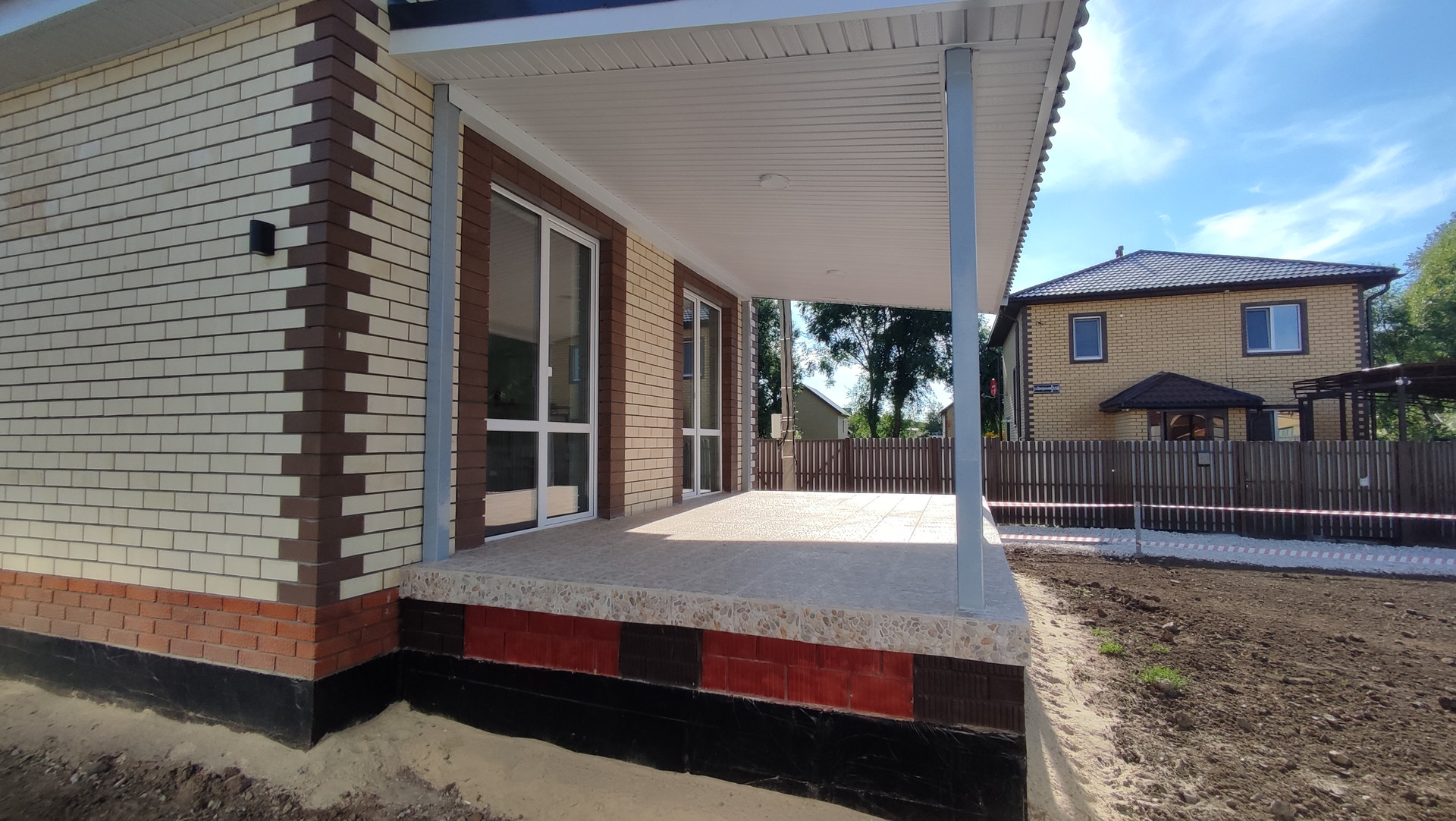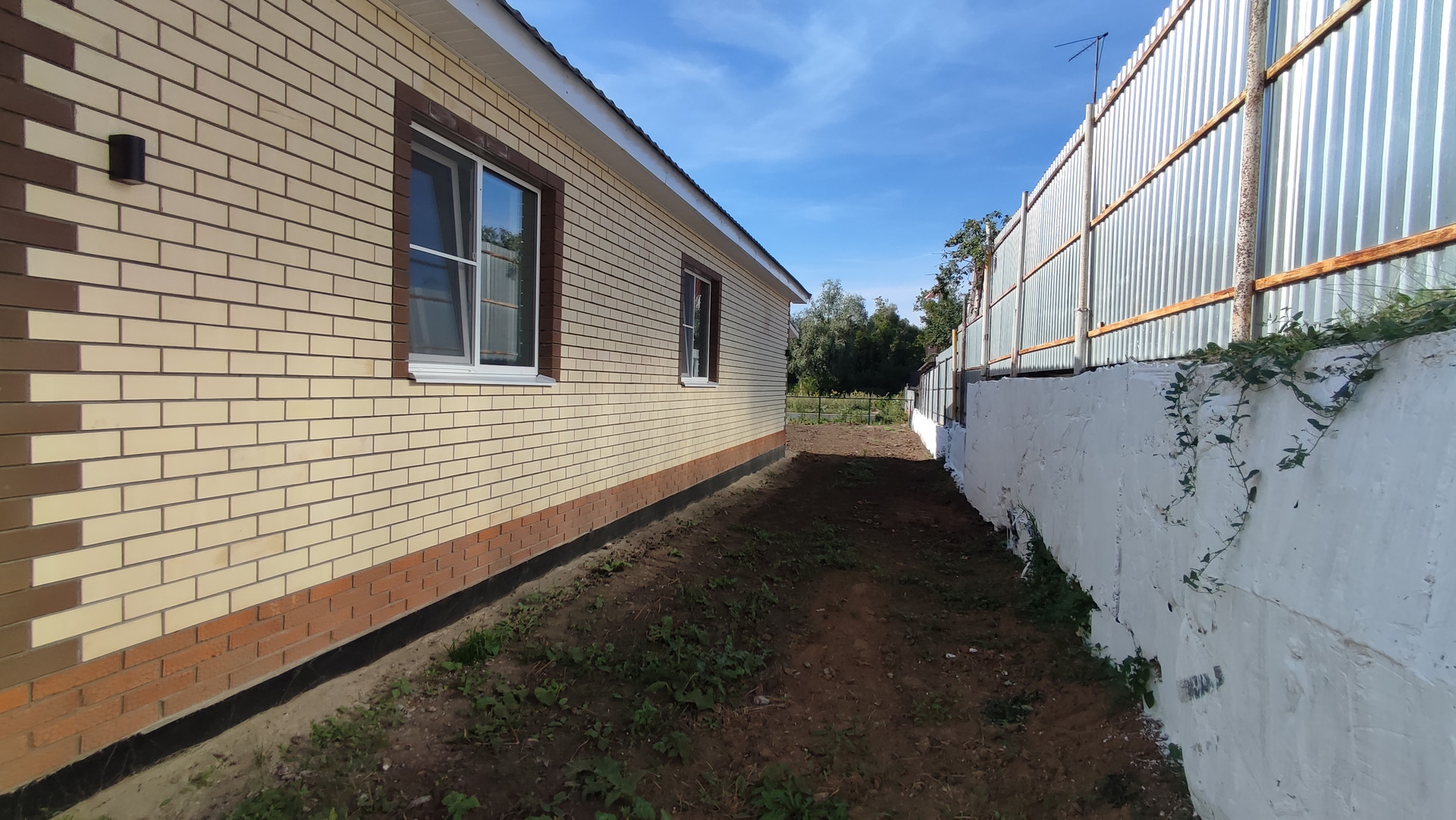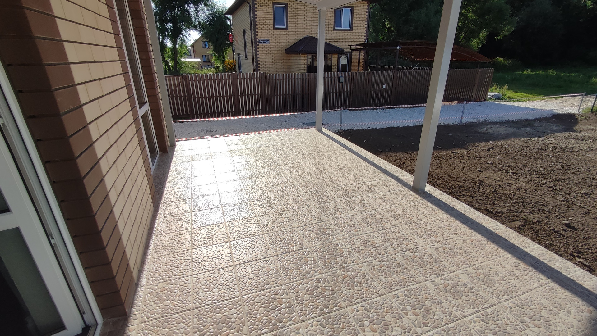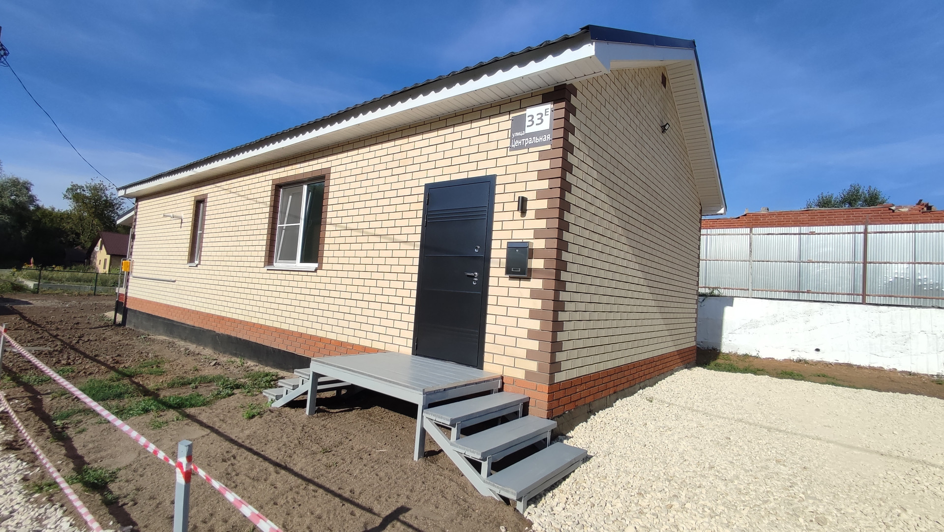 •    Дорога вдоль дома уложена щебнем